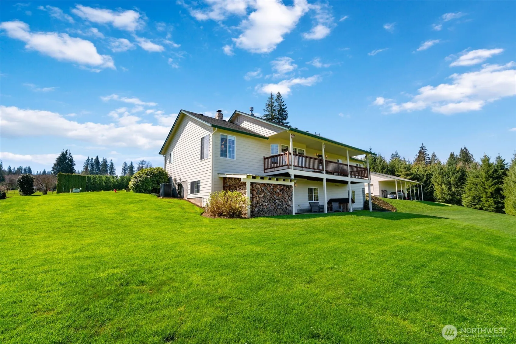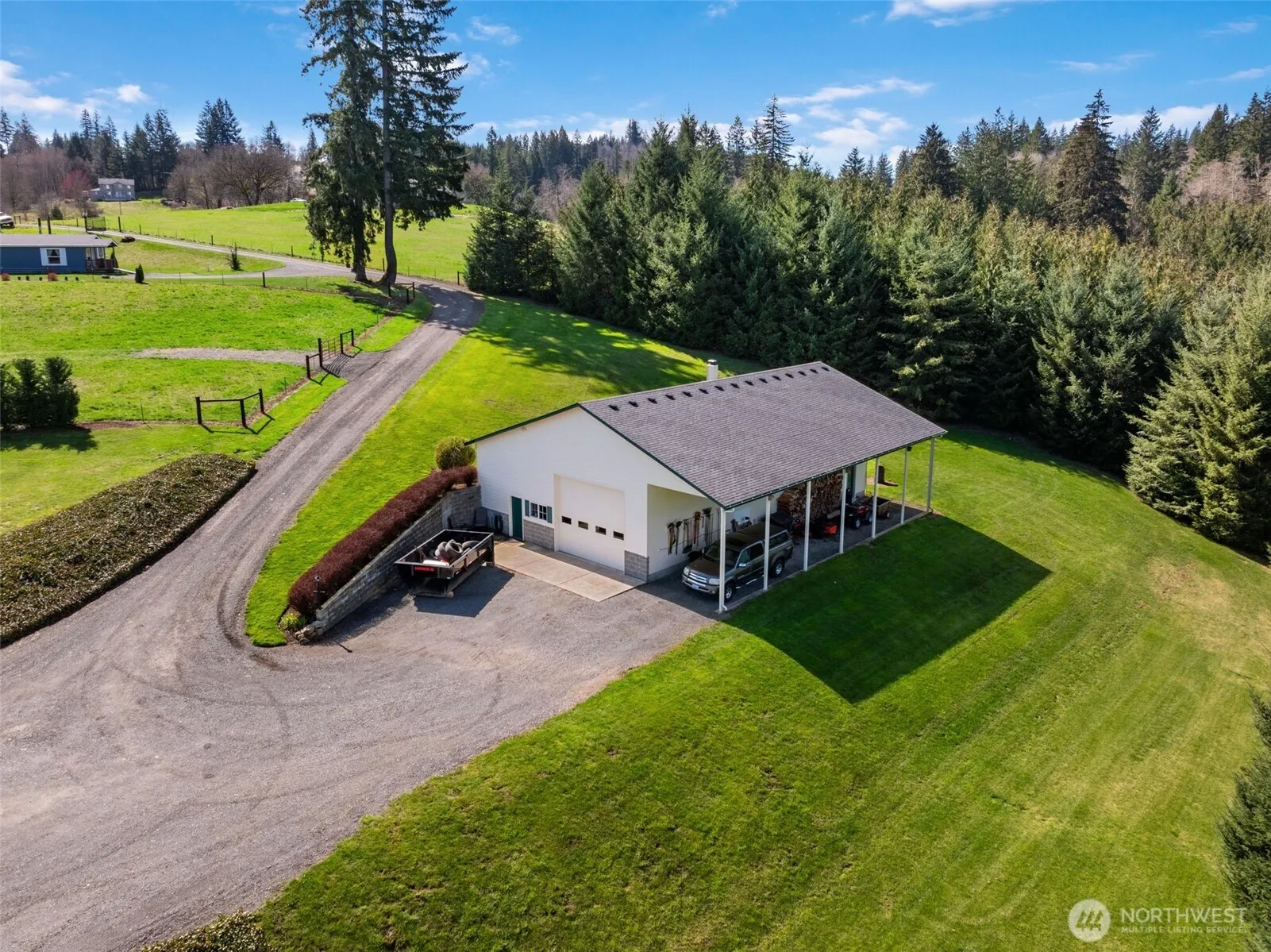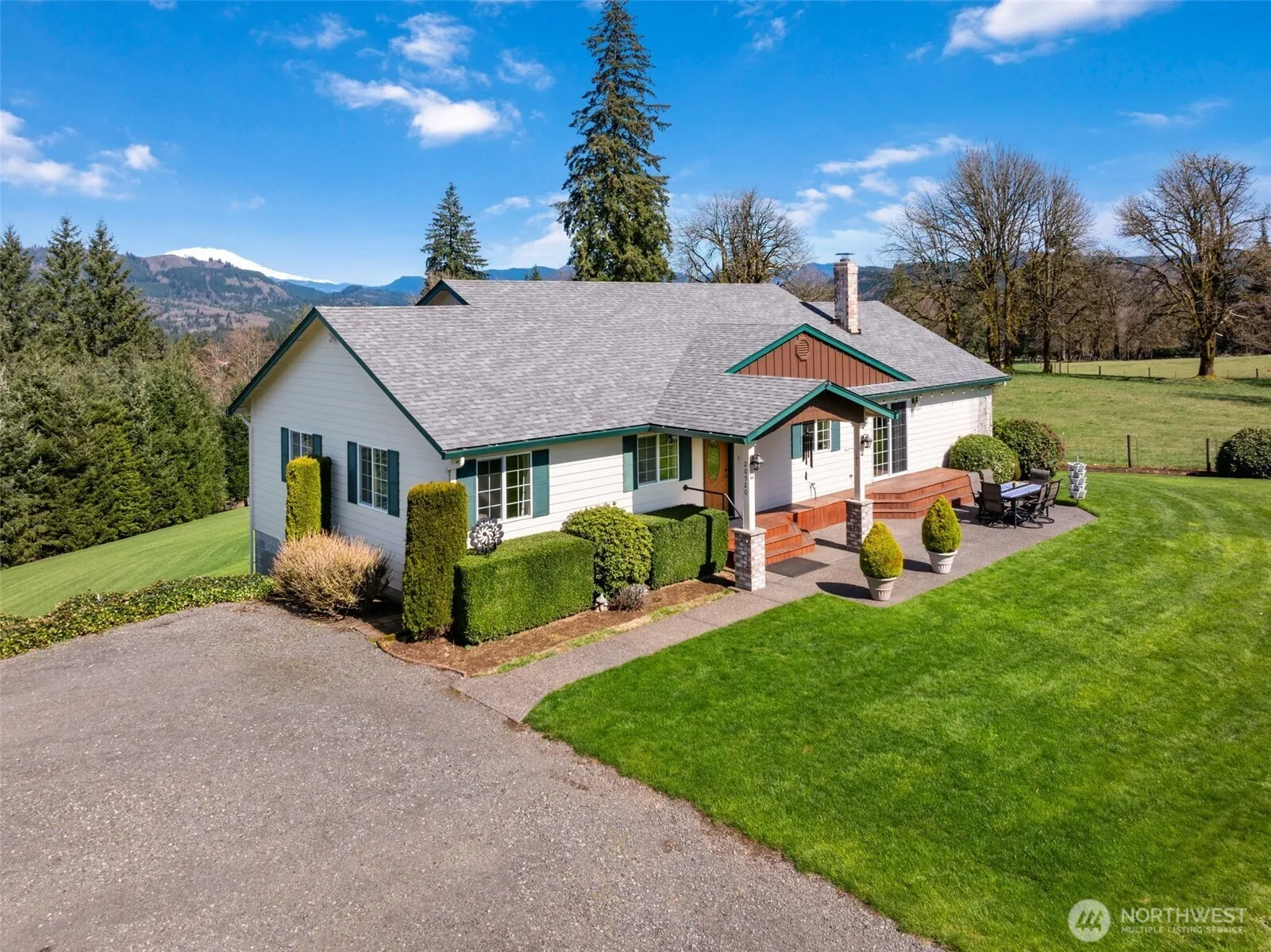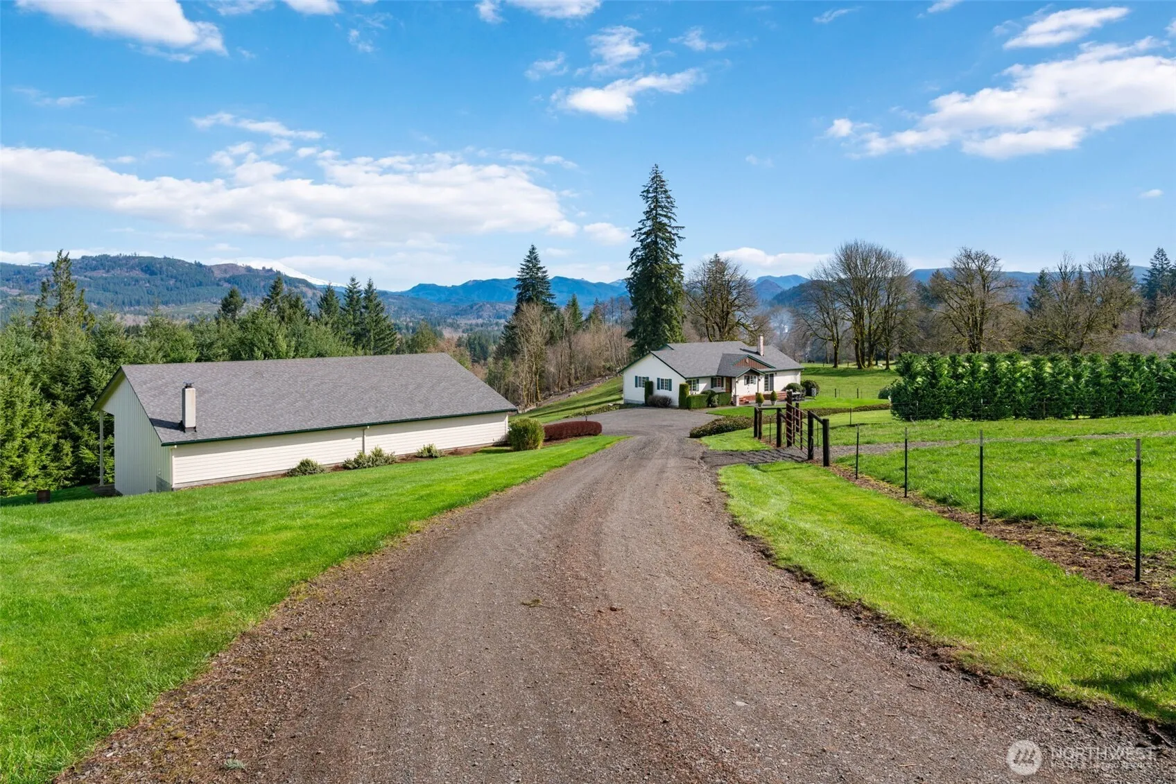 Discover this gated 10-acre country home featuring a 5-bedroom, 3-bath custom daylight ranch spanning nearly 3,600 sq ft. Enjoy easy main-floor living, vaulted ceilings, abundant natural light, and a cozy woodstove. The fully fenced and cross-fenced land showcases Mt. St. Helens views, a finished/heated 1,728 sq ft shop with a car lift, lean-to, RV hookups, and 220 power, plus a 2,000 sq ft barn for horses or livestock. A 2-bed, 1-bath 2020 manufactured home offers multigenerational possibilities. Meticulously maintained, it balances privacy with convenient access—just 15 minutes from Battle Ground, 30 minutes from PDX, and close to Lewis River recreation. Rolling pastures and future timber value complete this peaceful escape.