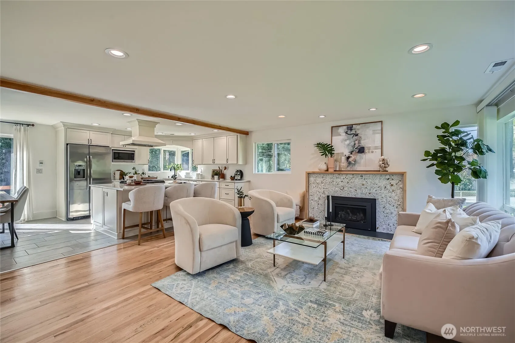 Beautifully updated home that perfectly blends modern upgrades with classic charm. Renovated kitchen is a chef’s dream, featuring central island, heated tile floors & stylish finishes. Refinished wood floors flow throughout, adding warmth & character. Cozy up by the gas fireplace & stay comfortable year-round w/heat pump for heating & cooling. Large primary bedroom offers a ¾ en suite bath w/potential to expand & create a luxurious bath & walk-in closet. Partially finished basement provides extra living space, abundant storage & endless possibilities. Love to create? The expansive 300 SQFT workshop is a maker’s dream! 2-car, RV Height carport. Corner lot with fully fenced & spacious front yard. All this in a prime location, welcome home.