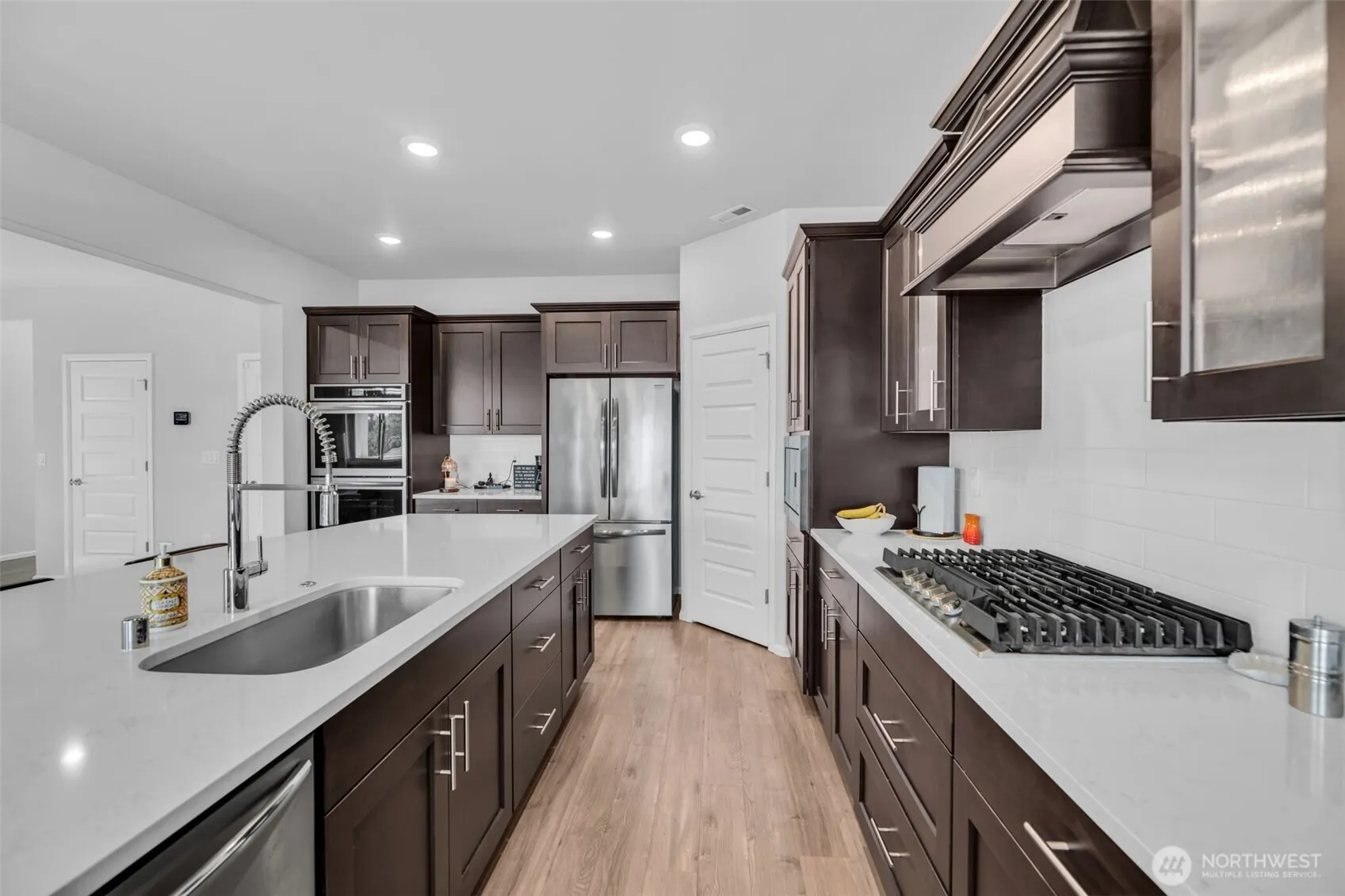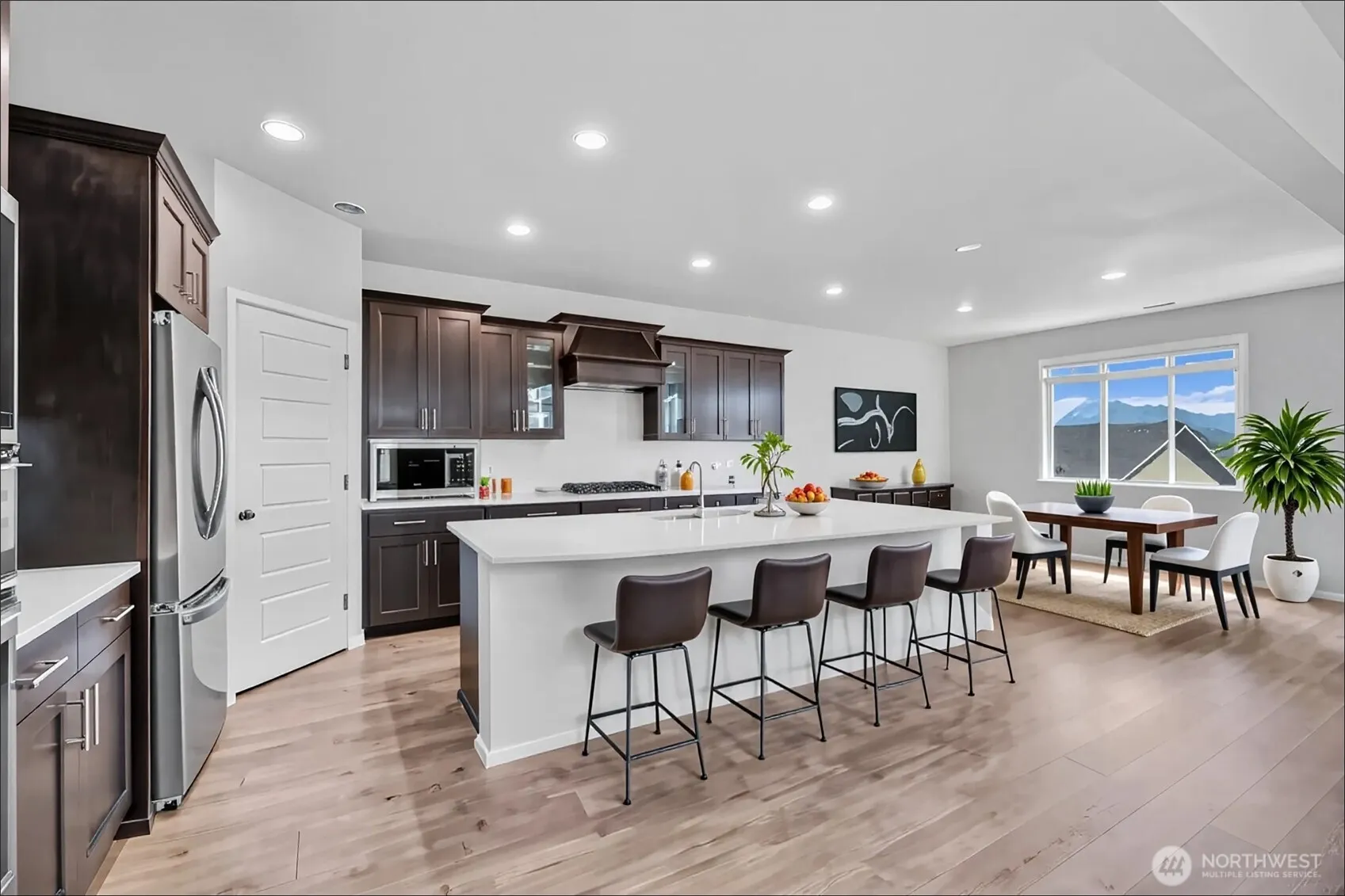 Welcome home to Mountain Crest. Offering 3,507 sqft of open floorplan, featuring LVP flooring, chef’s kitchen w/ quartz counters, SS appliances, 5 burner gas stove & large island. Upstairs includes sizable bdrms & a primary suite with a 5piece bath & walkin closet. Large basement features a bdrm with walkin closet, bathroom, rec room & backyard access. Enjoy evenings on the patio or flexible rooms. Features include A/C, smart technology & a 2 car garage. Minutes to Hwy 9/US-2/I-5, DT, Costco & Frontier Village.