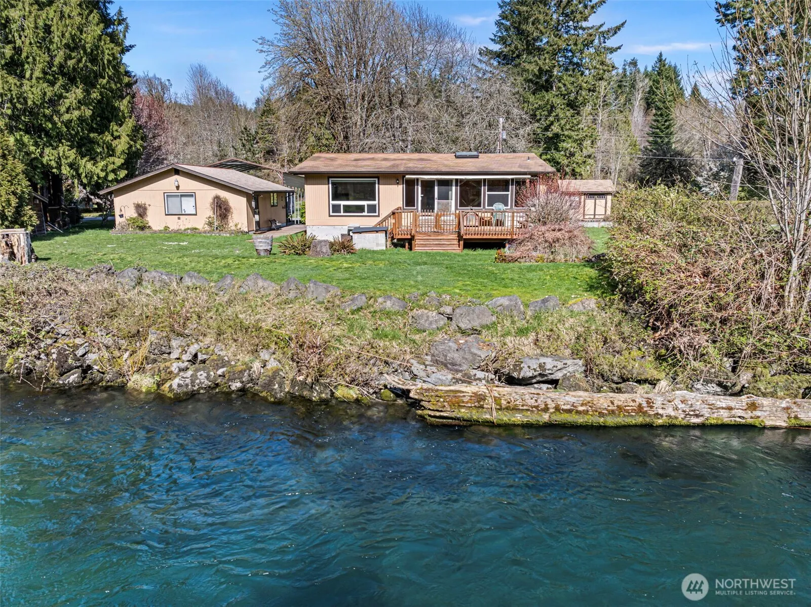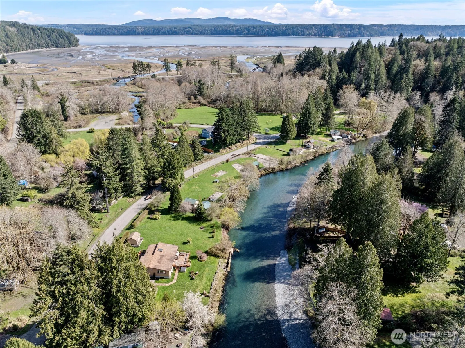 Over half an acre with pristine Duckabush River frontage, this property offers natural beauty and versatility. With views of the Olympic Mountains this well-maintained 2-bedroom home spans three separate parcels, offering flexibility for future use. It’s equipped with two operational 2-bedroom septic systems—one serving the main home and the other designated for the garage/utility area. Includes wooden walkways, a fire pit, two storage sheds, garage, and RV carport. Garage is outfitted with a finished utility room, with washer/dryer, additional refrigerator and freezer, and a 3/4 bathroom. Separate power for additional RV/toys on side lot. Riverfront haven is a wildlife lover’s dream: witness salmon spawning and occasional visits from elk.