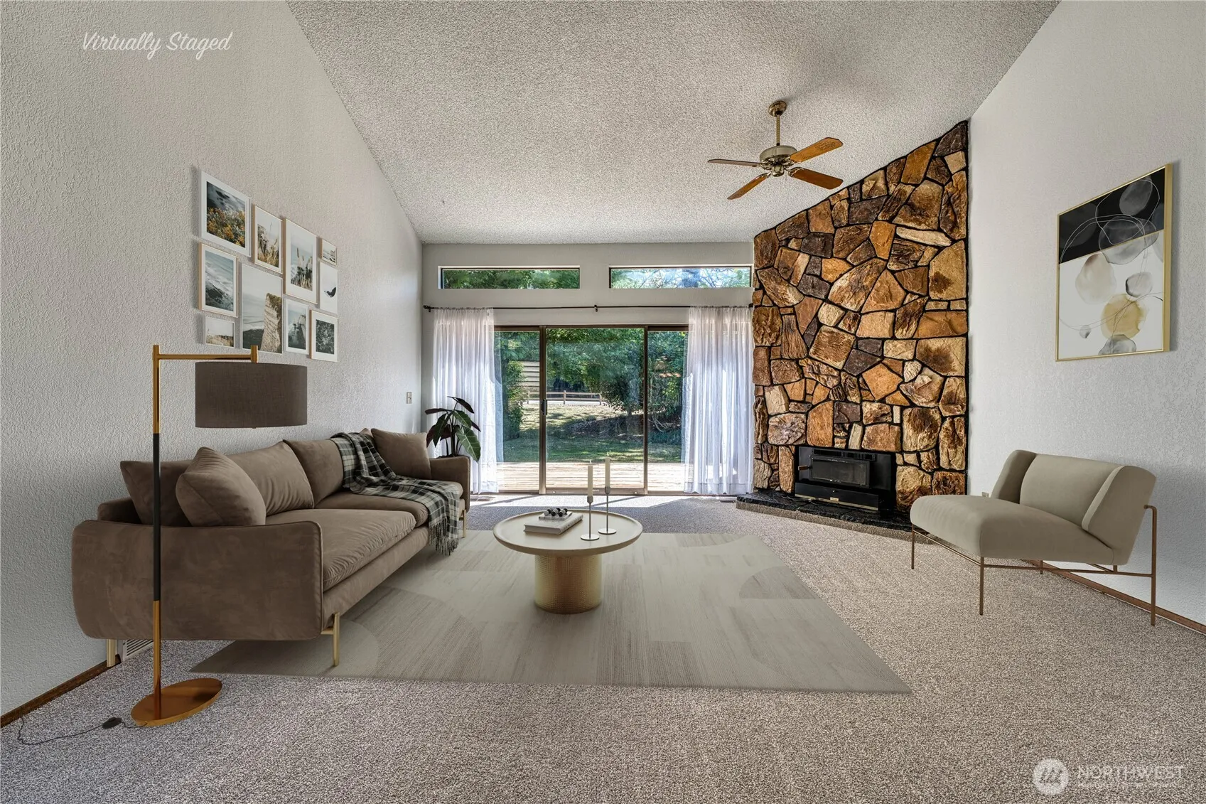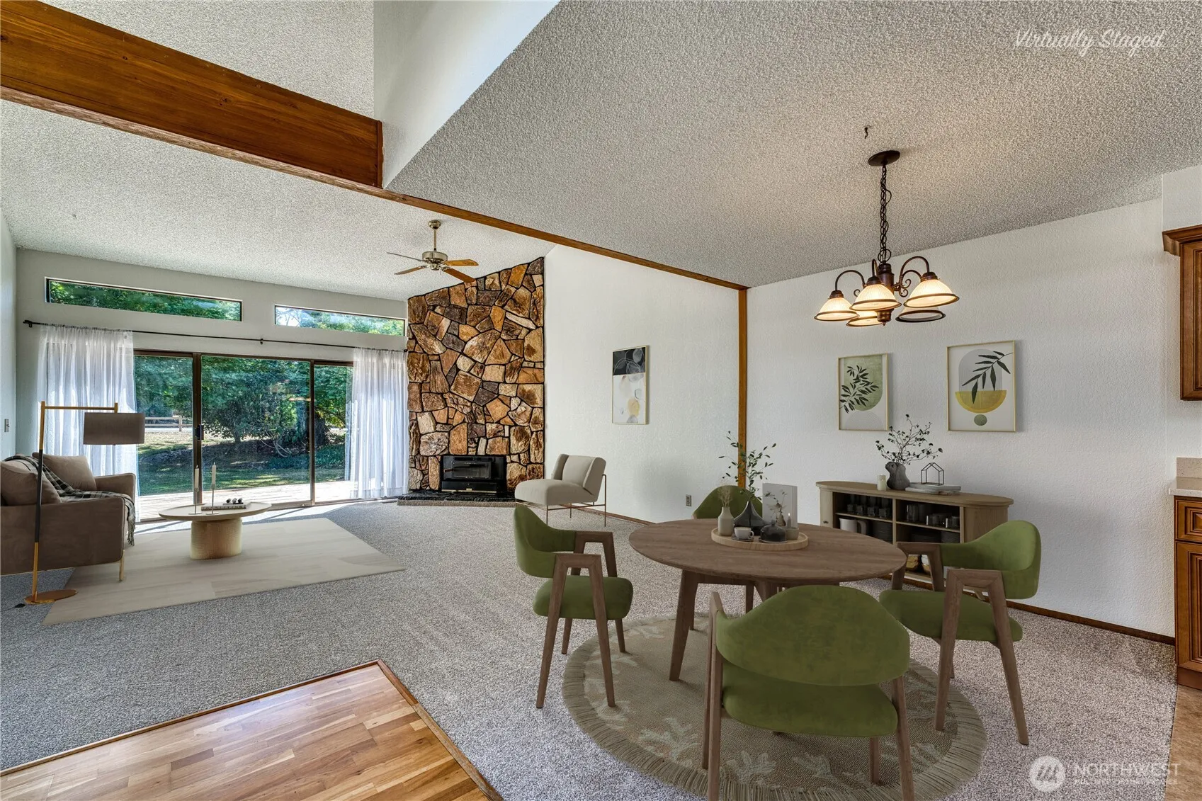 Located in the serene Cedar Downs Village sits a light and bright townhome with vaulted ceilings in the great room that leads to a quite spacious deck to entertain on or just relax. Enjoy the wood burning fireplace on cooler nights. Nicely updated kitchen with new cabinets including glass fronts for displaying, stainless appliances are all included and tile floors. Two generous bedrooms. Primary bedroom has dual closets and second bedroom has slider to a courtyard patio. Washer and dryer are also included. Additional features are economical gas furnace and water tank. Fresh paint and new carpet throughout. ONE YEAR HOME WARRANTY INCLUDED. Grounds maintenance, exterior building maintenance, and garbage service is included in the HOA fee.