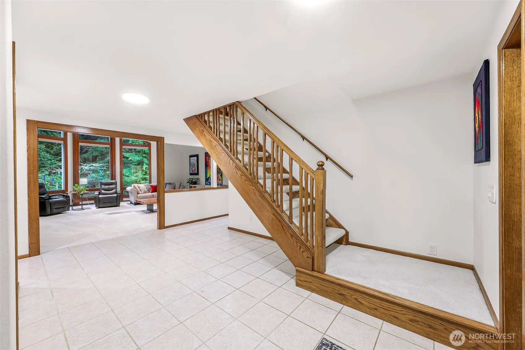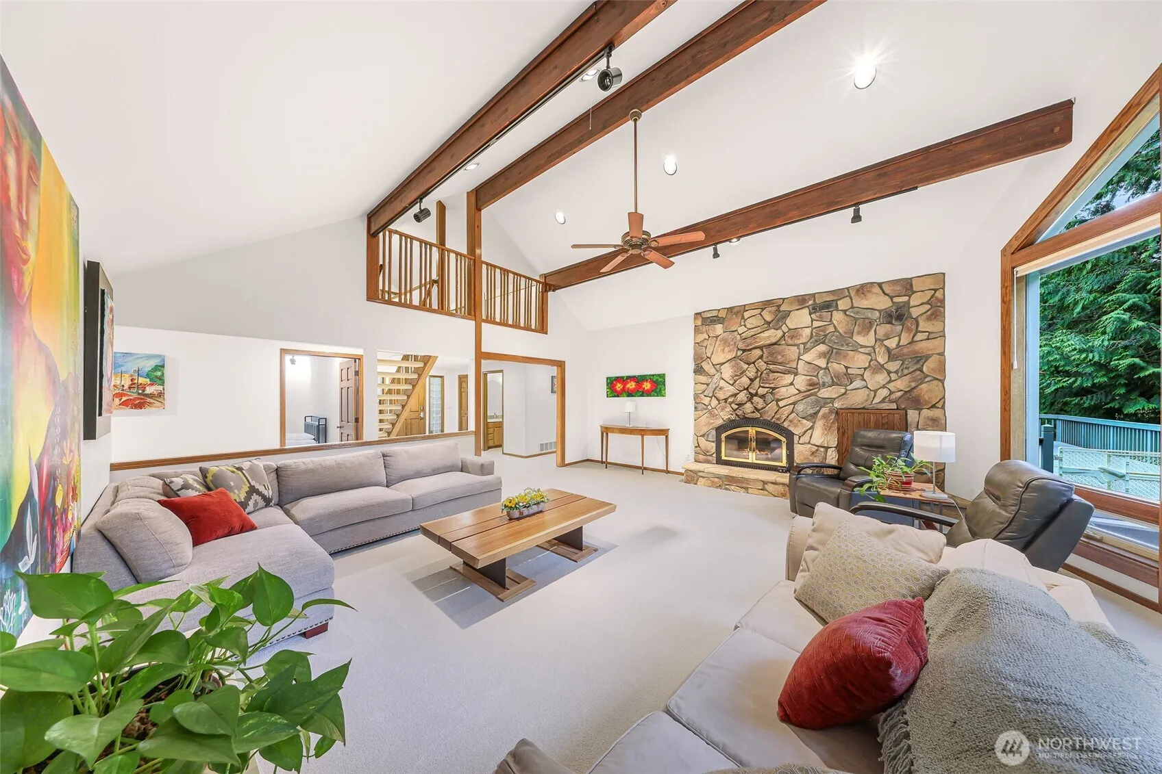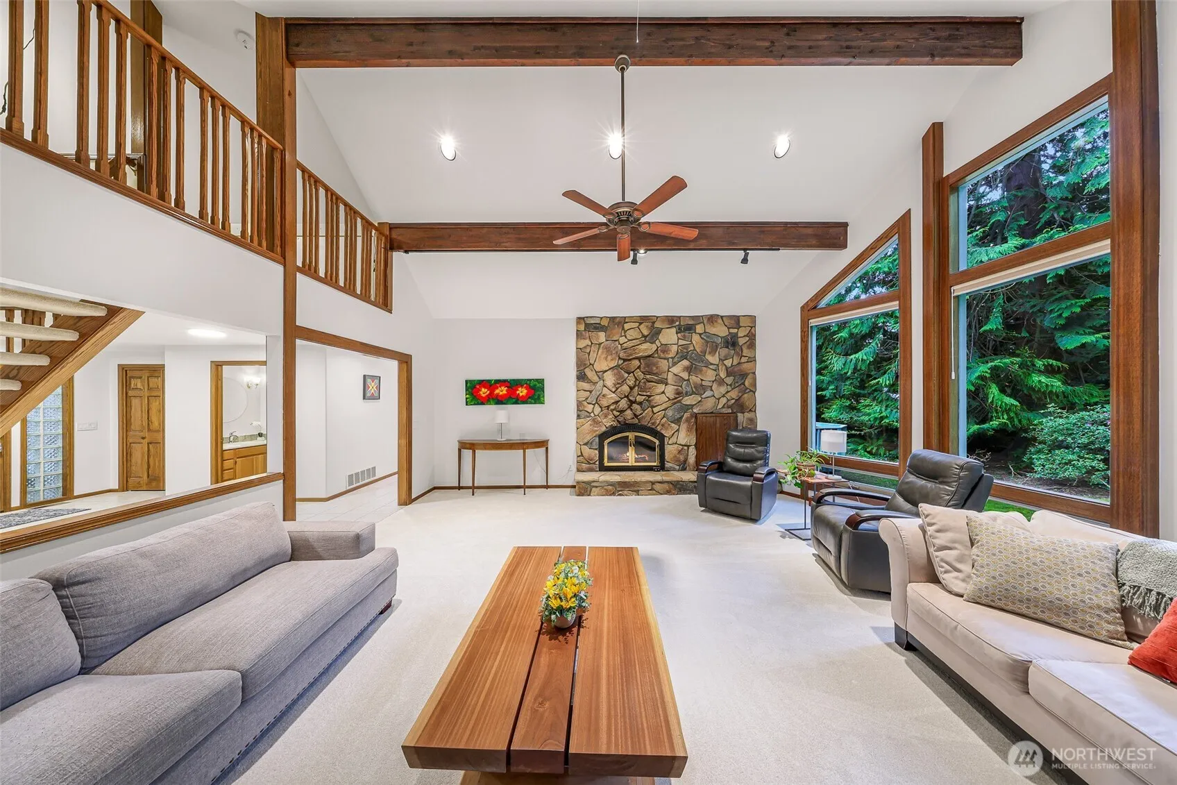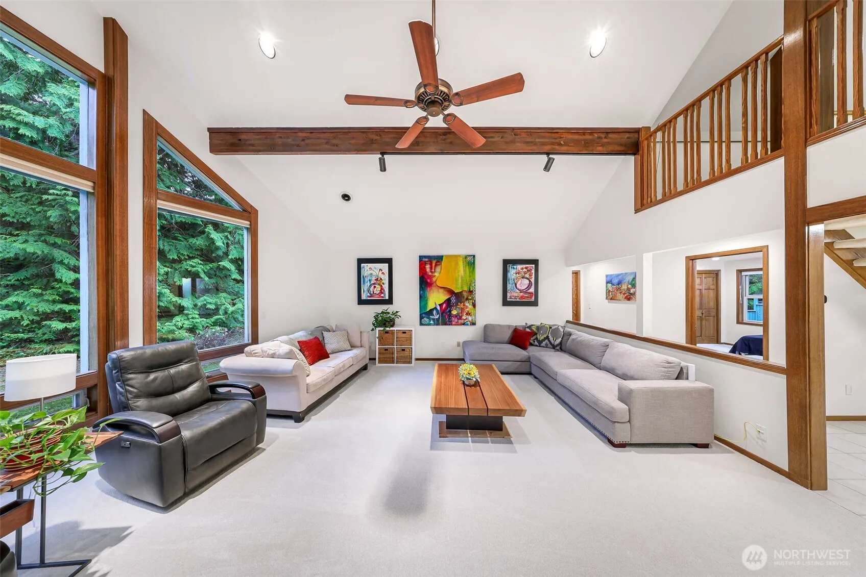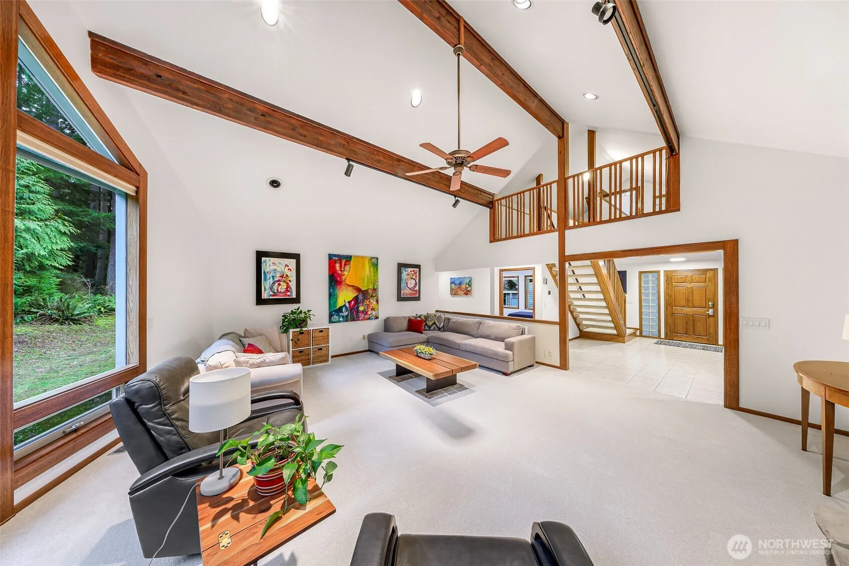 Nestled among mature evergreens, this classic custom home offers a serene retreat on level acreage. The main level features a spacious primary suite with a walk-in closet, a guest bedroom, a den, and open living, dining, and kitchen areas. A large 700+ sq. ft. deck provides the perfect space for entertaining. Upstairs, a private guest wing includes two bedrooms, a family room, and a bath. Recent updates include a whole-house generator, new water softener, water heaters, energy-efficient lighting, and high-speed fiber internet. A 3-car garage with a workshop adds versatility. Just minutes from Maxwelton Beach and Hwy 525, this home blends comfort, convenience, and tranquility.