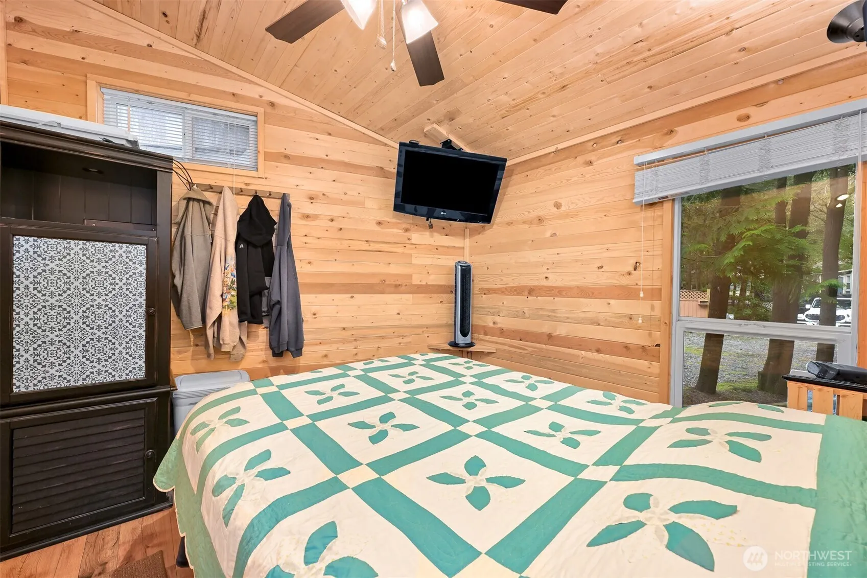 Turnkey Vacation Retreat! This beautifully remodeled getaway is move-in ready w/tongue & groove pine walls/ceiling, oak cabinets w/ under-cabinet lighting, built-in pantry, & new vinyl flooring throughout. The living room has a Murphy bed & radiant heating, allowing the home to sleep 8 comfortably. Enjoy the outdoor kitchen & entertainment area w/a table featuring built-in outlets. Enjoy darts on your dartboard, or large storage shed. This home has so many amazing features, it’s hard to list them all!Located in a vibrant community w/a year-round heated indoor pool, playgrounds, trails, & more, this well-thought-out vacation home is the perfect place to relax & enjoy the outdoors! Zoned Recreational and permitted for 120 day use per yr