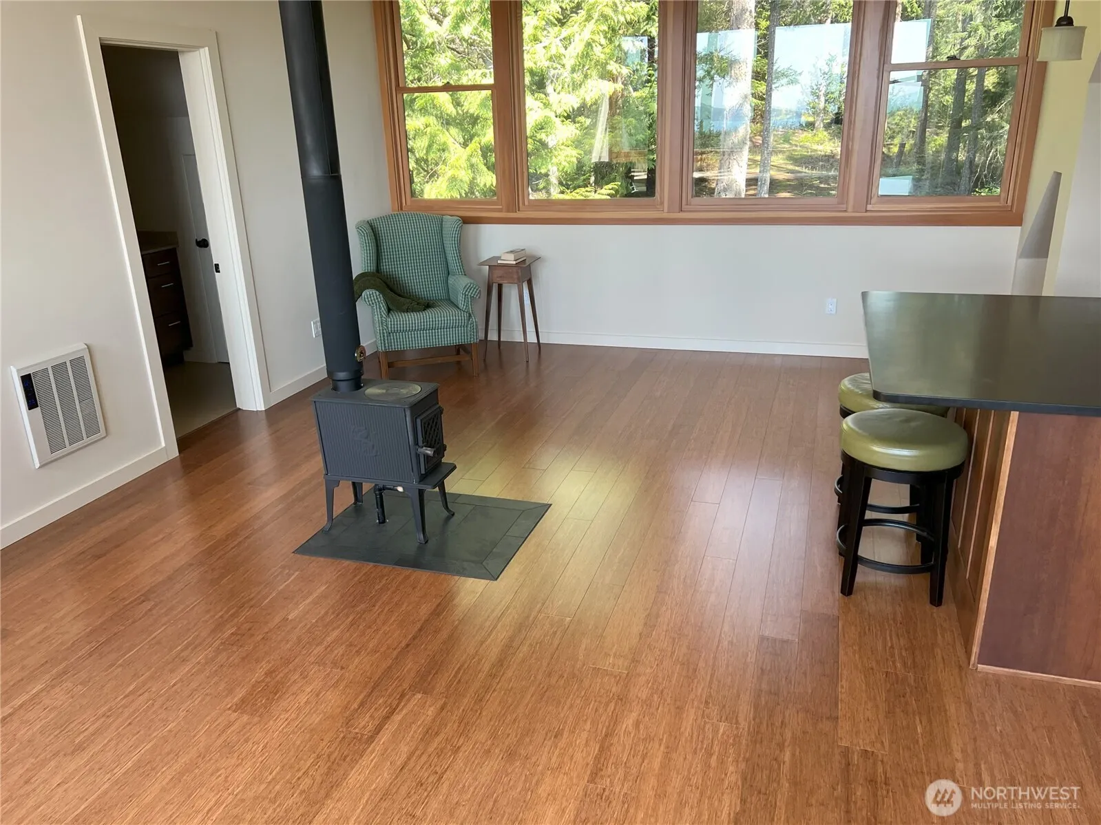 This beautifully crafted home features bamboo flooring, a finished studio with well-designed kitchen, window seat, central woodstove, custom wood windows and wine storage. 728 square feet of additional finished space could be perfectly converted to bedrooms. With a private well, 3BR septic, and sunny exposure for a garden and/or orchard; this property offers so much! The 2.5 acres is surrounded by 30 acres of conservancy and offers privacy and southern exposure plus distant water views. Community perks include a private airstrip, deep-water dock, and miles of beaches and trails. A peaceful retreat with practical amenities; live large or small…the choice is yours. Fiber optic being installed. Easy access by passenger ferry. Incl golf cart