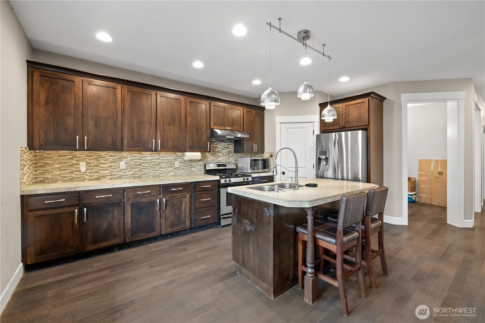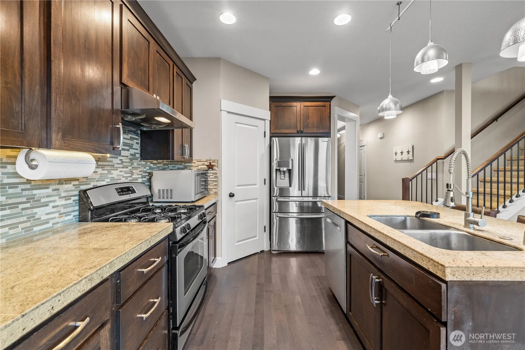 Wonderful home located in the hills of Washougal with a territorial view in a tranquil cul-de-sac! Light and bright, this home features a living room w/ gas fireplace! Kitchen with Stainless Steel appliances, eat-bar & full tile backsplash. Formal dining space. 5 large bedrooms 3 with walk in closets & large laundry/utility room. Formal bath has full tile shower, soaker tub, fireplace & large walk-in closet! Newly fenced back yard. Covered back Patio plumbed for gas BBQ. Easy access to freeway, entertainment, PDX airport. This home is perfect for the stay at home owner, employee or traveler. If you enjoy the outdoors there many walking paths in and near this well kept community. This home has it all!
