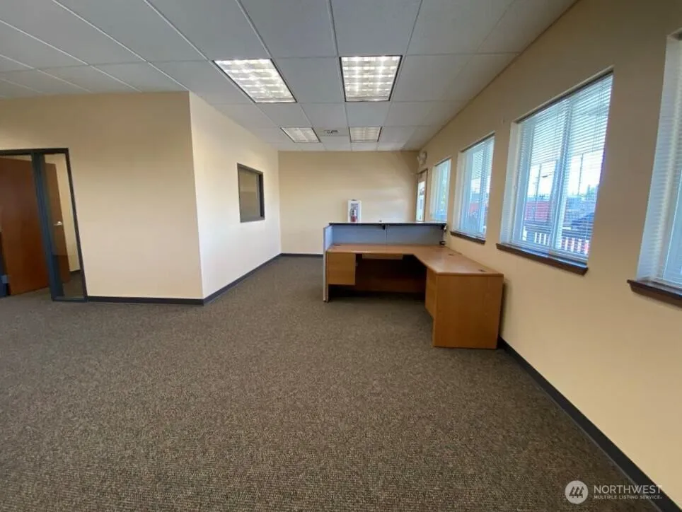 871 square feet of office space now available for lease. Private interior office and storage space. Front and rear door entrances. Shared kitchen and bathrooms. Owner provides electricity, water, sewer and garbage. Tenant would be responsible for internet, phone, and security service. Located on road with high traffic/visibility. Street and lot parking. Near stores and restaurants.