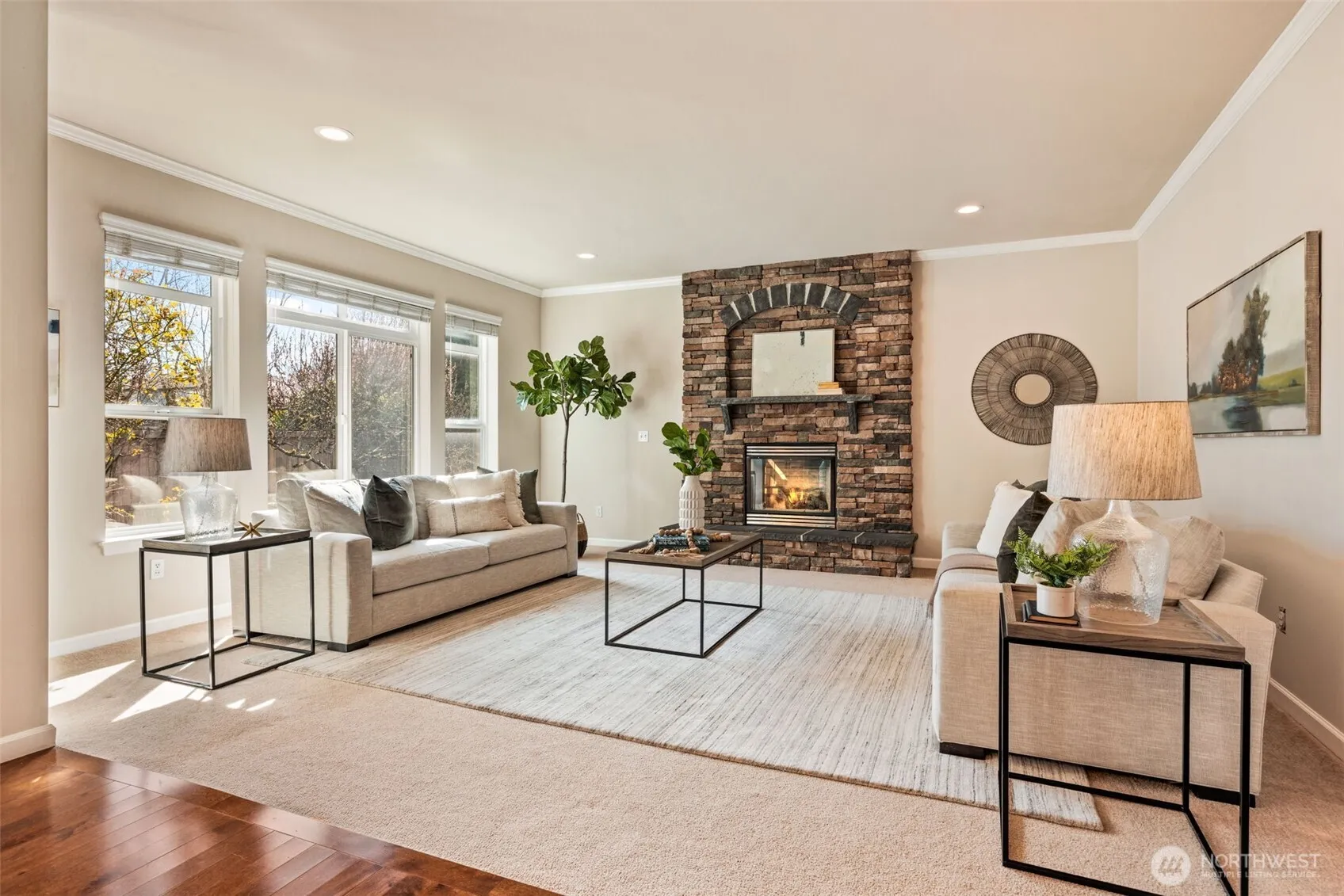 Smart layout, convenience, privacy and stellar location: this 2,870 sq ft Mill Creek Home delivers! On the main floor: true hardwood floors, new kitchen appliances, a dedicated office for WFH, a handy mudroom, and a large garage with shop space. Upstairs offers four bedrooms—including an enormous primary suite with a walk-in closet and a sumptuous bath—plus spacious family room for play, tv, and flex space! The home sits next to a greenbelt, offering a sense of space and privacy. Thoughtfully maintained by one owner, with a brand-new roof just completed in 2025. All this in a dream school district and close to Penny Creek Nature Area—this one is ready to go!