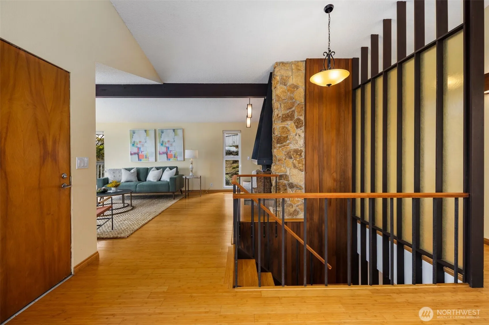 This mid-century modern beauty has been lovingly cared for yet still retains all the vintage details you’ll love. With over 3,300 square feet, 3 bedrooms and multiple bonus rooms, this house lives large. Enjoy the spacious living room with stunning fireplace, formal dining room, and a wrap-around deck, plus terrific views of Lake Washington, just blocks away. Gorgeous hardwood cabinetry in the kitchen with updated counters and new bamboo floors throughout. Gaze at the lake while washing dishes! Main floor family room is open to the kitchen & lower level rec. room (w/2nd fireplace) offers flexible living space. Epoxy garage floor. Great opportunity for multi-generational living with a kitchen, full bath and W/D hookup on each level.