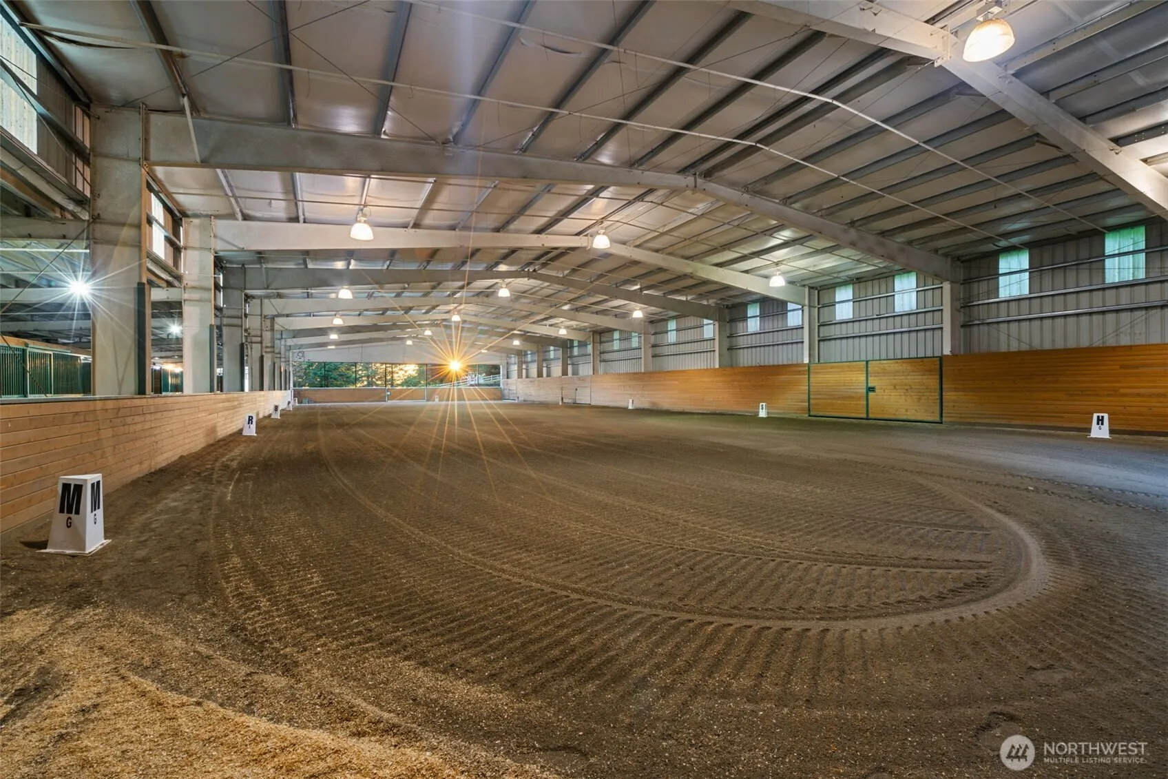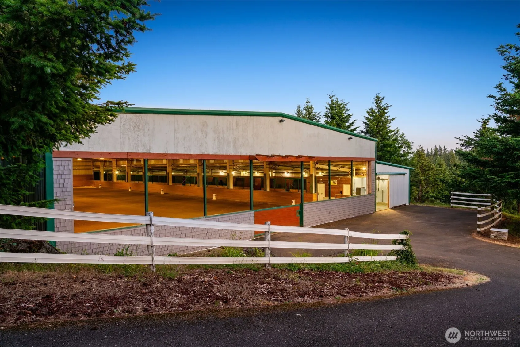Premier 10.5-acre equestrian estate with a 22,000 SF Olympic-size clear-span dressage arena, remodeled designer home, and large multi-bay shop. The 3-bed, 2.1-bath, 3,596 SF single-level home features a gourmet kitchen, vaulted great room, maple floors, cedar ceilings, and expansive views from a 1,000 SF deck. The primary suite includes dual walk-ins, jetted tub, and custom shower. Equestrian amenities: ten 12×17 stalls, heated tack room, hot/cold wash rack, 70′ round pen, and five Centaur®-fenced pastures. Gated entry, fiber internet, CCTV, and hidden safe room. Zoned R-5. Just 25 min to PDX.