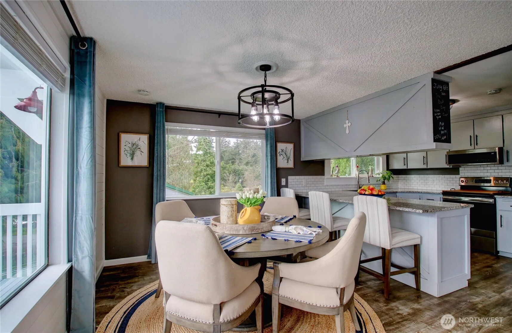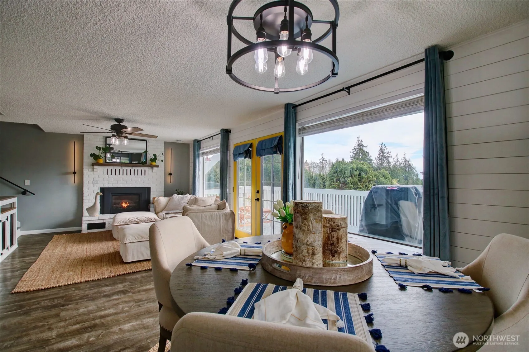 Charming Northwest A-Frame. This beautifully remodeled 3-bedroom, 1.5-bath A-frame home offers stunning views of Admiralty Inlet and surrounding farmland. Situated on over half an acre, the home features a spacious living area w/ a new propane fireplace, a modern kitchen, & updated bathrooms. New LVP flooring, fresh paint, & two new decks—one off the primary bedroom & another off the living room—enhance the home’s appeal. The serene backyard includes a firepit & fruit trees, while the unfinished basement offers ample storage or flex space. With a metal roof, new gutters, & thoughtful updates throughout, this home combines rustic charm w/ modern comfort. Experience the best of Northwest living in this tranquil, beautifully updated retreat!