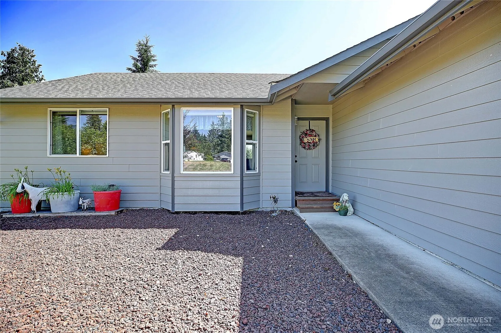 IMMACULATE & MOVE-IN READY rambler in the Country Club on a DOUBLE LOT! This well-maintained home features 3 bedroom, 1.75 bath, open-concept layout with vaulted ceilings, kitchen w/eating space, dining room, new flooring, and charming touches throughout. The primary bedroom includes an en-suite bath, creating a comfortable retreat. Sitting on a half-acre, the property offers a large partially fenced yard, new carport w/upstairs storage, small shops to tinker in + covered RV parking. Enjoy peek-a-boo views of Mt. Baker from the back deck or take advantage of three private community beaches just moments away. Located minutes from two State Parks, public boat launches, golf, dining, shopping and so much more!