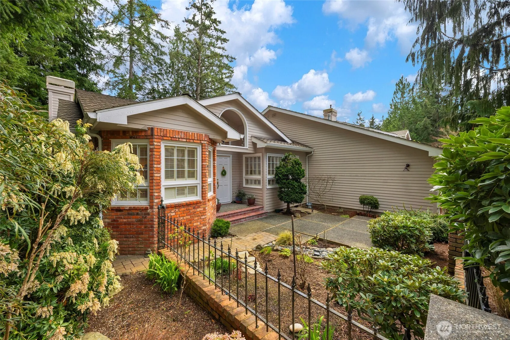 Rare rambler in one of Mill Creek’s most desirable neighborhoods, Pembrook. This classy, impeccable 2 bedroom, 1.75 bath home is special. You’ll appreciate the quality, style and flair of this gorgeous home. With vaulted ceilings, skylights and extensive hardwood floors, 2 classy gas fireplaces, huge primary suite with 5 piece bath and jetted tub, A/C, and quality touches throughout, you can’t go wrong. Spacious kitchen features cabinets galore and SS appliances. Pull-down stairs in the laundry access a HUGE attic storage room. HOA dues include use of the Mill Creek’s extensive parks and trail system. Super-convenient location with easy access to the shopping and restaurants of the Mill Creek Town Center. Pre-inspected for your convenience.