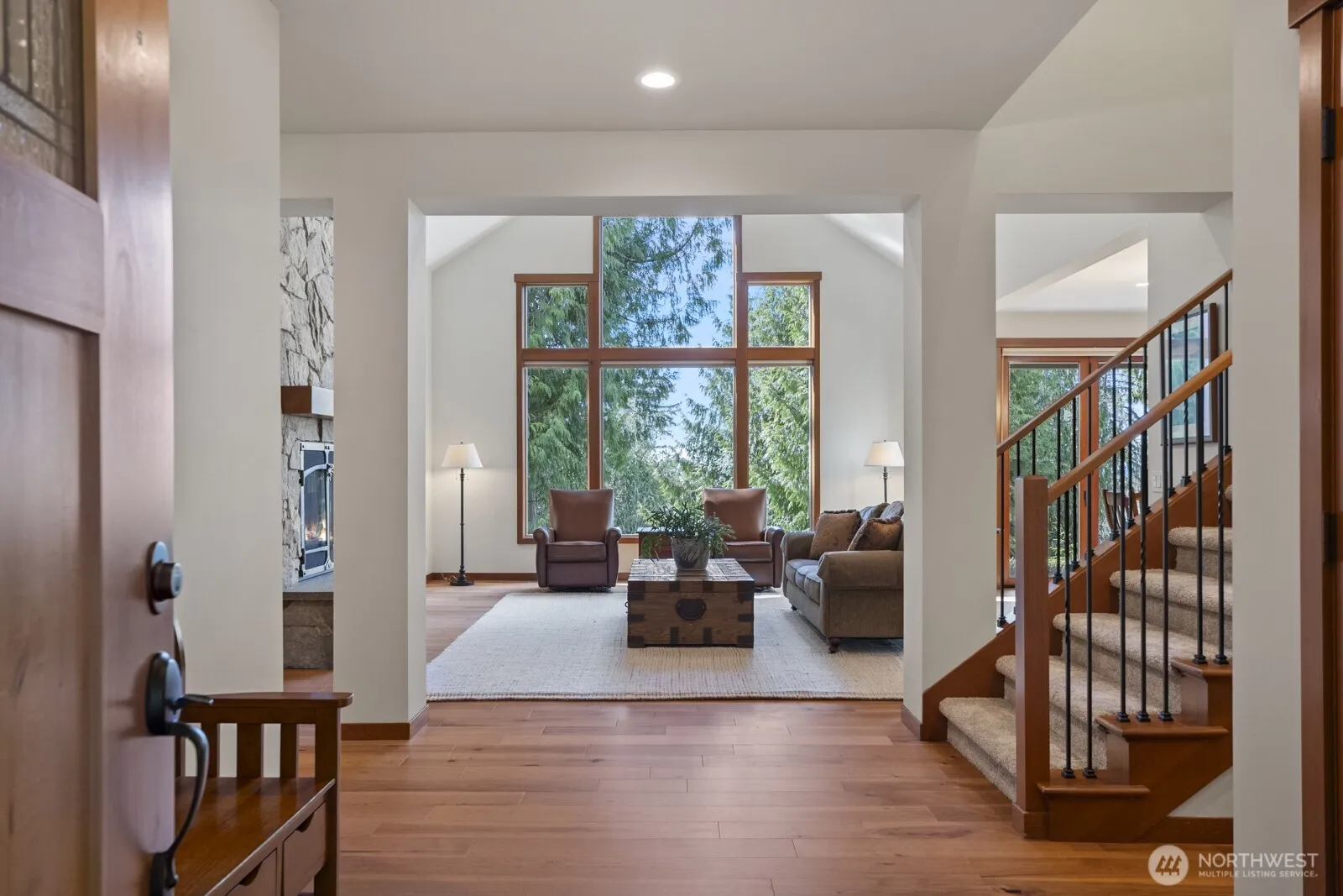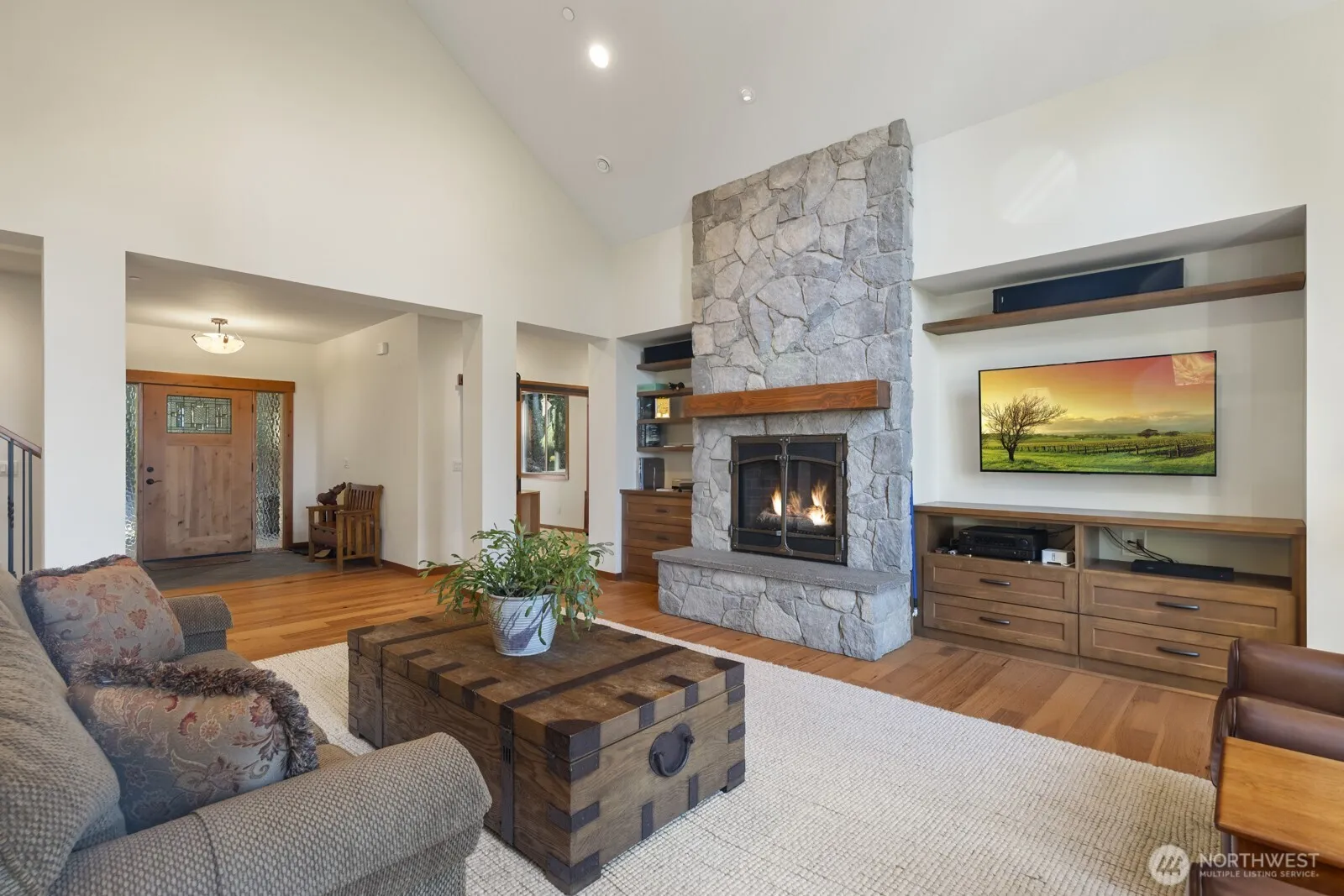 Fall in love with this Fall City acreage home in a storybook setting! Just minutes to Sammamish, Issaquah, & charming Downtown Fall City. This custom Northwest Lodge style home lives like new. Positioned for privacy down a long, private drive. Surrounded by nature w/ a welcoming covered porch. Step inside to soaring ceilings. Genuine hickory hardwood floors. Open floor plan. The 2-story great room centers around a grand stone fireplace. A wall of windows floods the space w/ sunlight & territorial views. Luxurious primary suite on the main level. Dedicated office is ideal for WFH. Sun-filled grounds. This home is made for entertainment or relaxation. Prized Snoqualmie Valley schools. Pre-inspected. What dreams are made of!