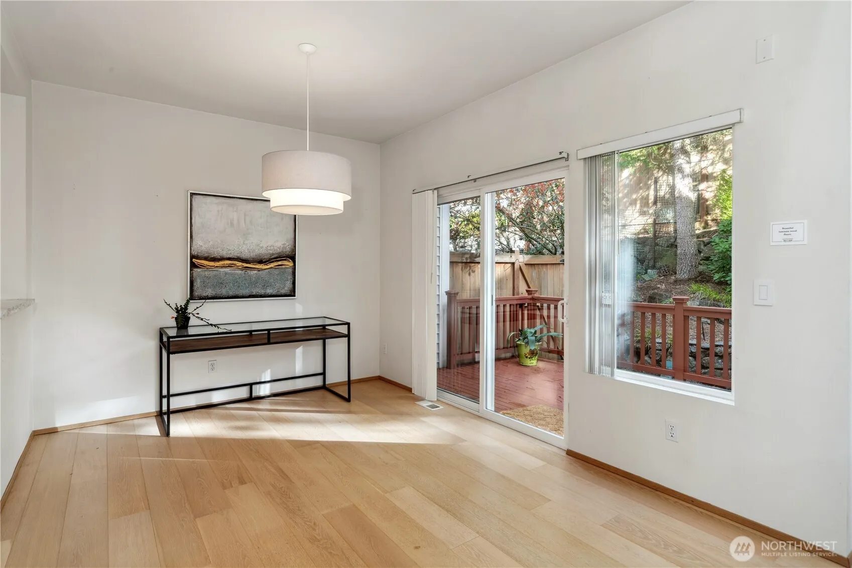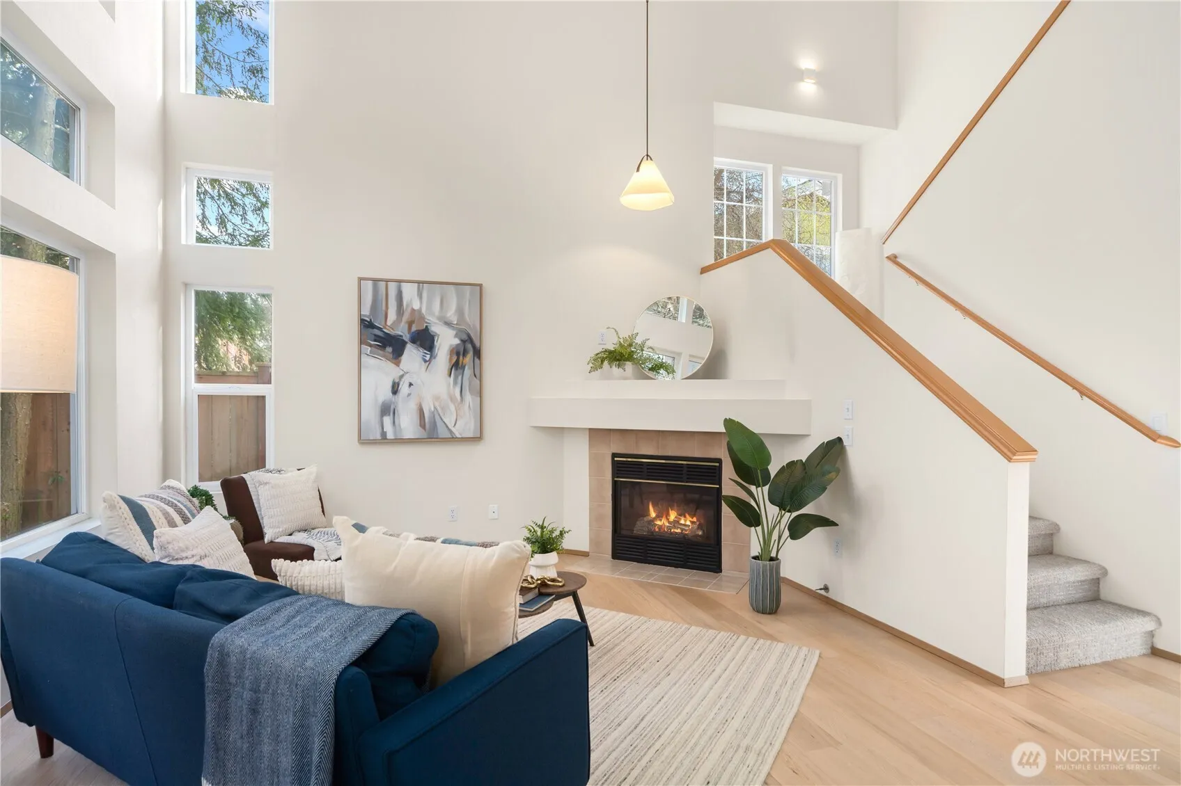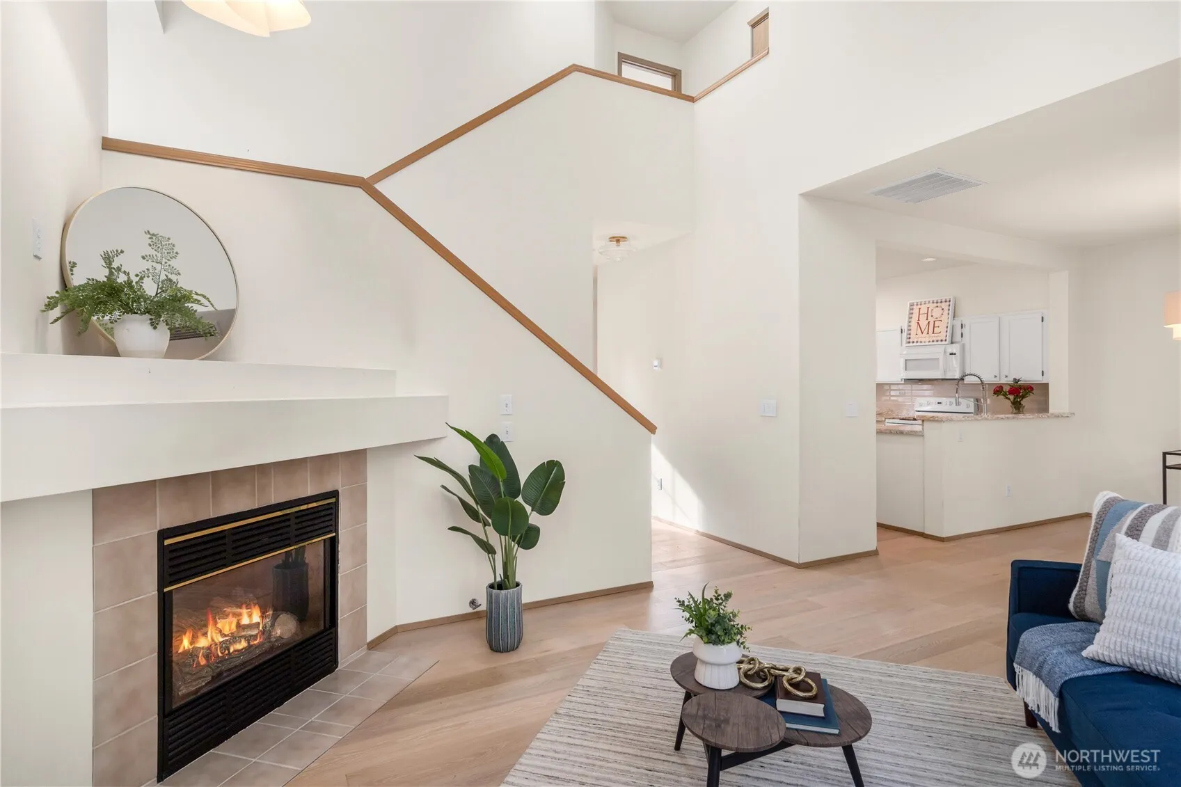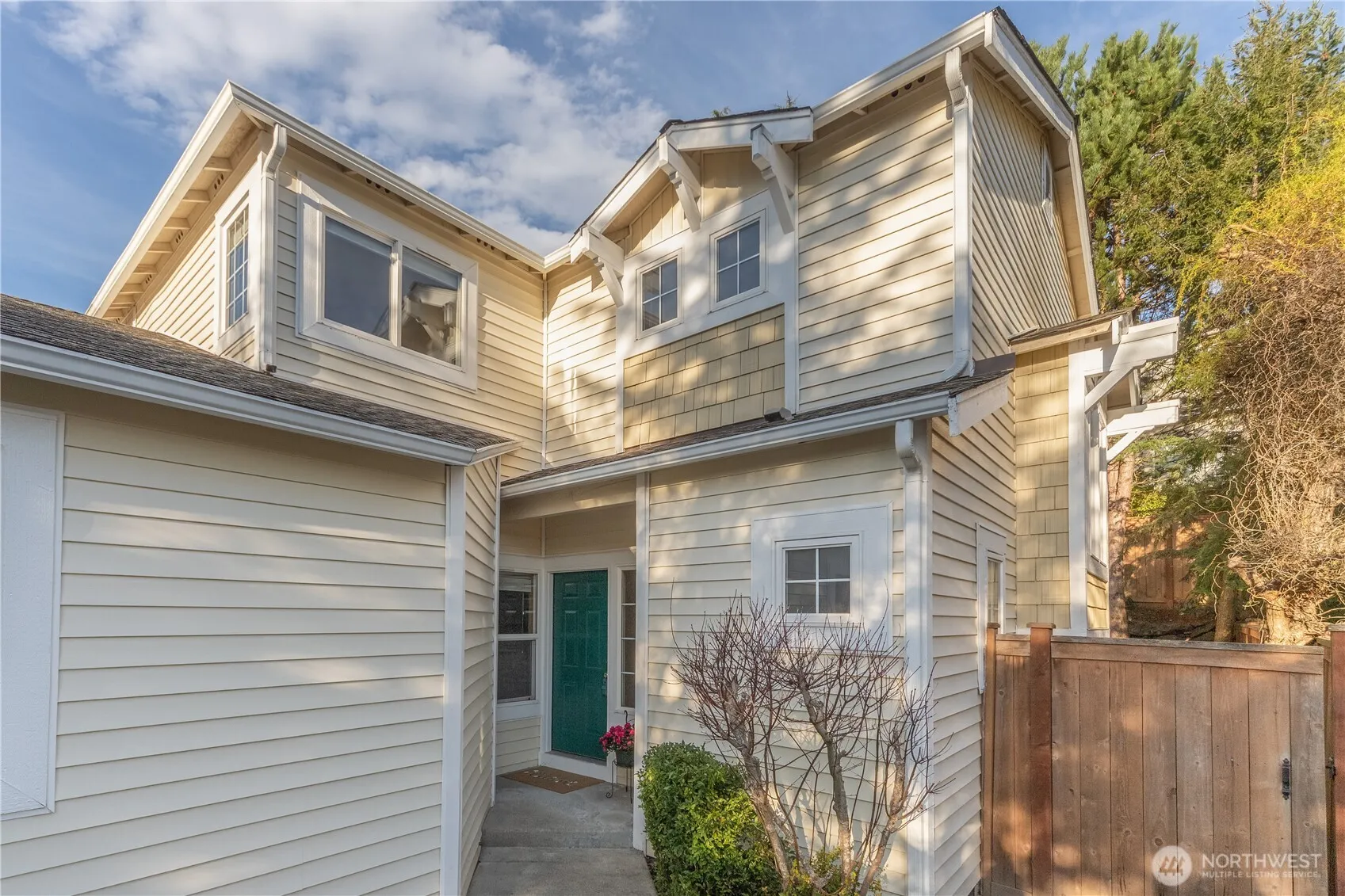 Discover the perfect move-in-ready home, featuring an abundance of natural light w/ large windows that illuminate the vaulted-ceiling living rm & fireplace for those chilly evenings. The dining rm opens to a back deck. Updated kitchen offers an eat-in area, or you can easily convert it into a versatile workspace. Staircase landing perfect for a cozy reading nook. Beautiful laminate wood floors flow throughout the main level, while brand-new carpeting enhances the upstairs. Both upper bathrooms have been stylishly updated for a modern feel. Plus, enjoy a peekaboo view of the mountains from the primary bedroom. Located in a quiet community, minutes the Silverdale business district, hospital, trails, mil bases and CK school district.