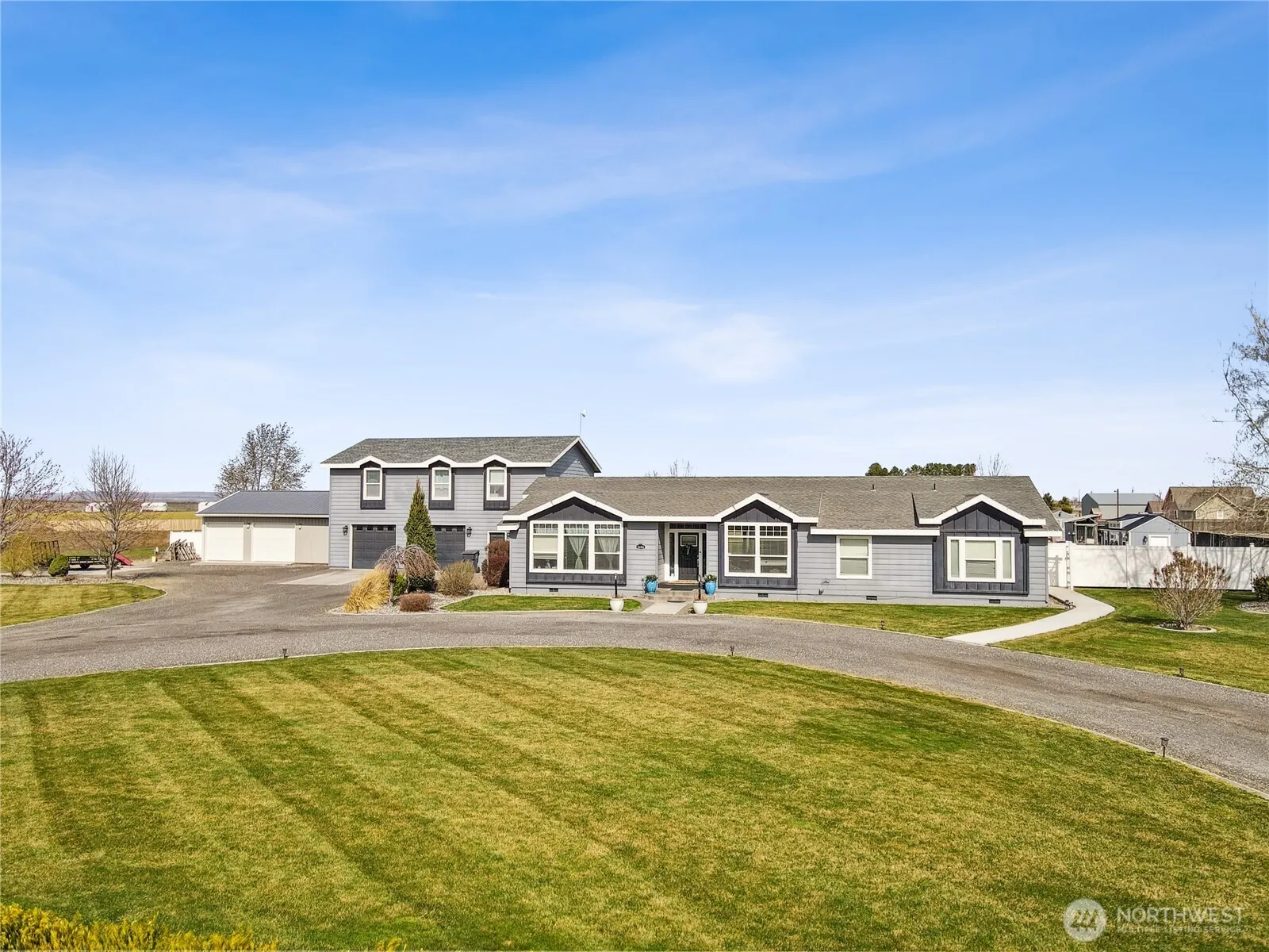Discover your DREAM HOME! Situated on 2.5 acres, this charming home offers a boasting 4,000 sqft! This 5 bedrooms, 3.5 bath open floor plan is perfect for both relaxation & entertaining, featuring a kitchen with quartz countertops, walk-in pantry, stainless steel appliances, a large island, kraft room, flexible office space and spacious great room! Primary suite offers an en-suite jetted tub, double vanities, tile shower, and a walk-in closet!! Whether you’re hosting gatherings or enjoying quiet moments, this home effortlessly caters to all your needs. 14×32 SALT WATER POOL! HOT TUB! 24×30 SHOP! Pressurized irrigation sprinklers! Many more extras you just need to see to appreciate. Seize the opportunity and make it yours today!