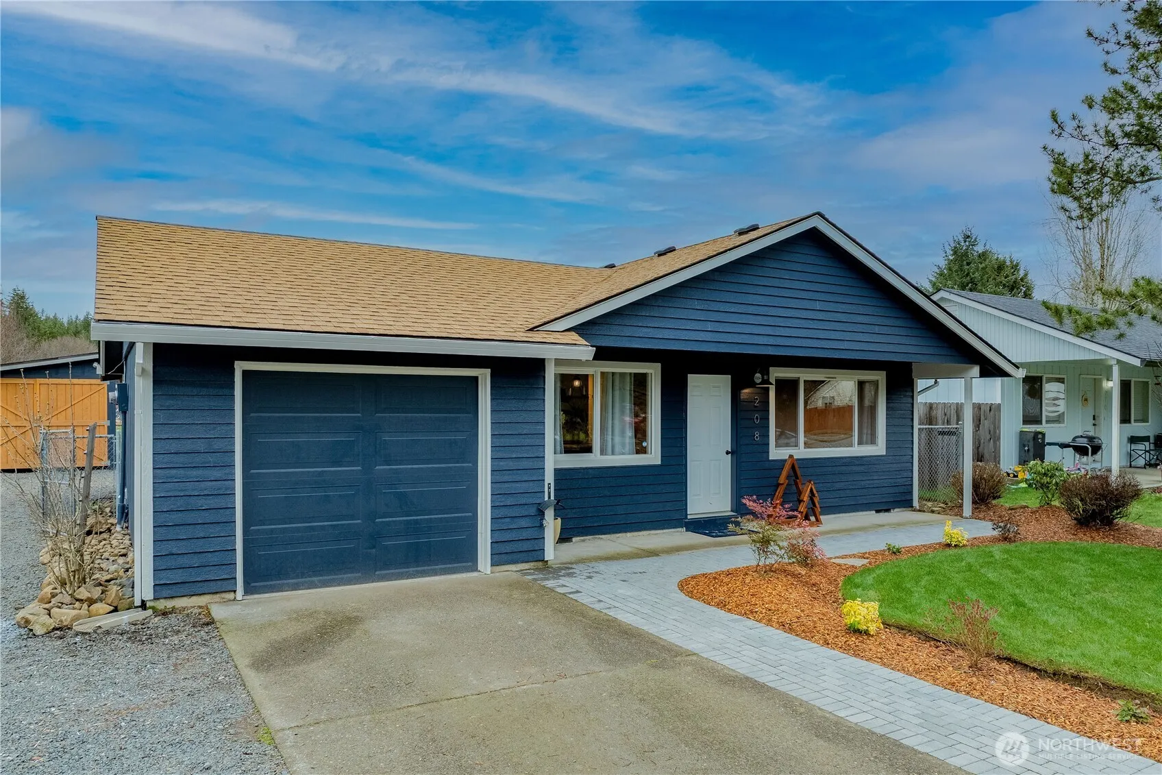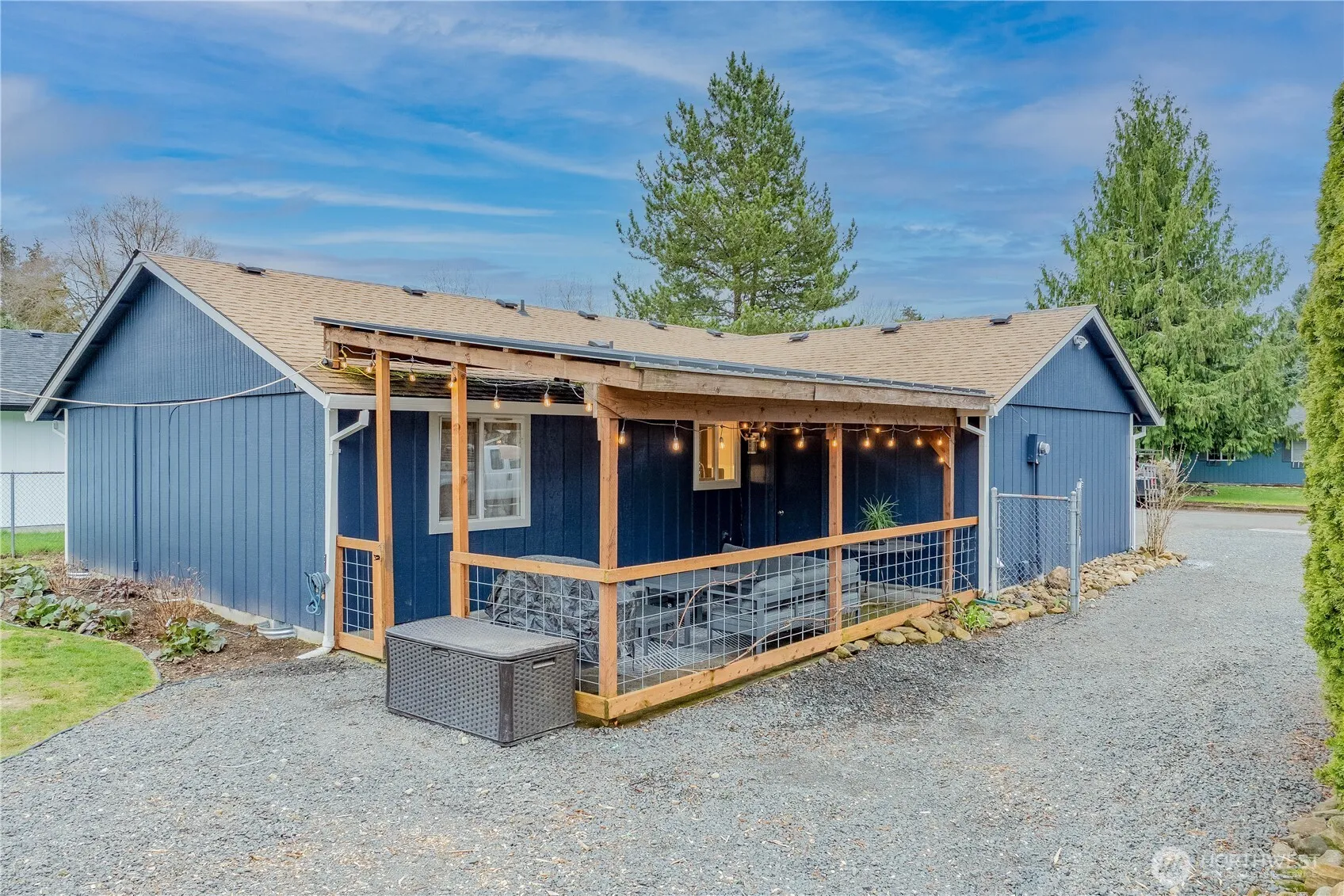 Discover the magic of small town living and combine comfort with country living. Open style floor plan welcomes you the moment you walk in. Large windows give lots of natural light throughout. The kitchen boasts butcher block countertops, glass front cabinetry, vinyl floors, open shelving, and SS appliances. Down the hall find a thoughtfully placed half bath, generous sized bedrooms & spacious closets. Bead-board ceilings in the kitchen & bathroom bring character & comfort in the details. Step outside to enjoy the covered patio, raised garden beds, fruit trees, berries, flowers & more. Sip coffee in the tranquil backyard, gather eggs from your chicken coop, tend to your garden. Store all of your lawn equipment in the 12’x14′ storage shed.