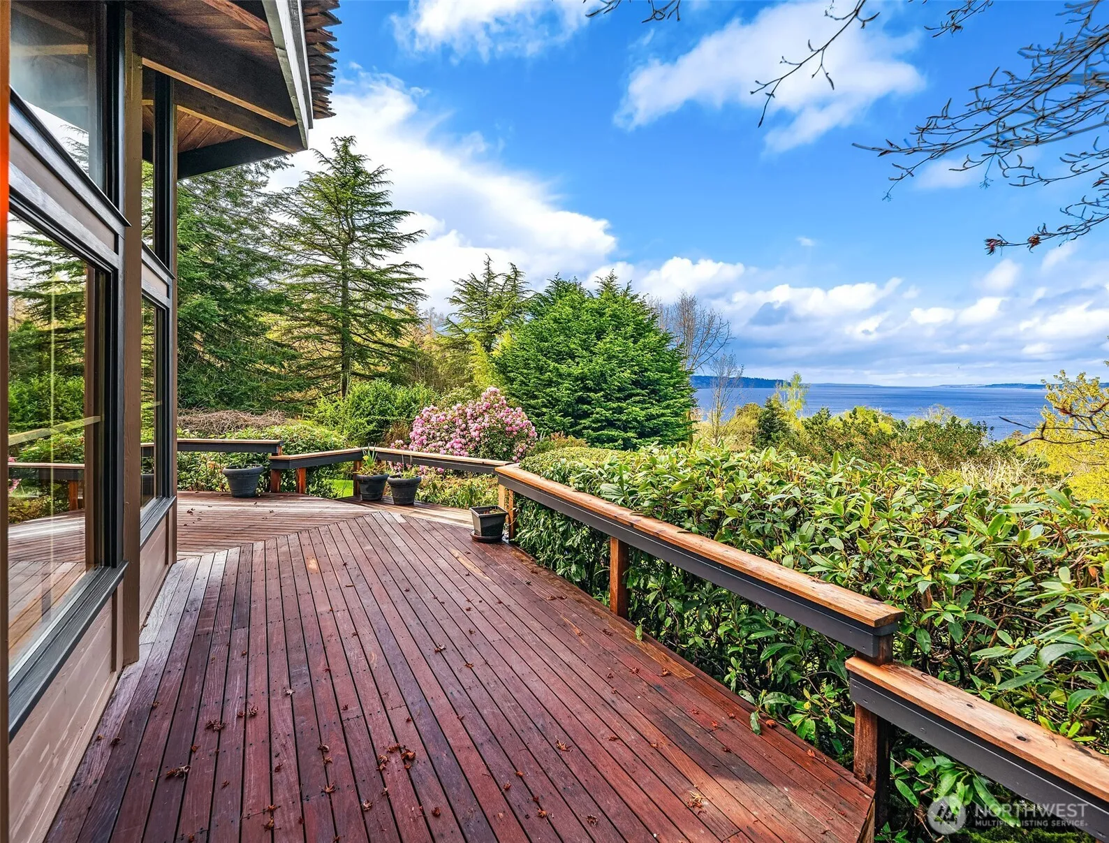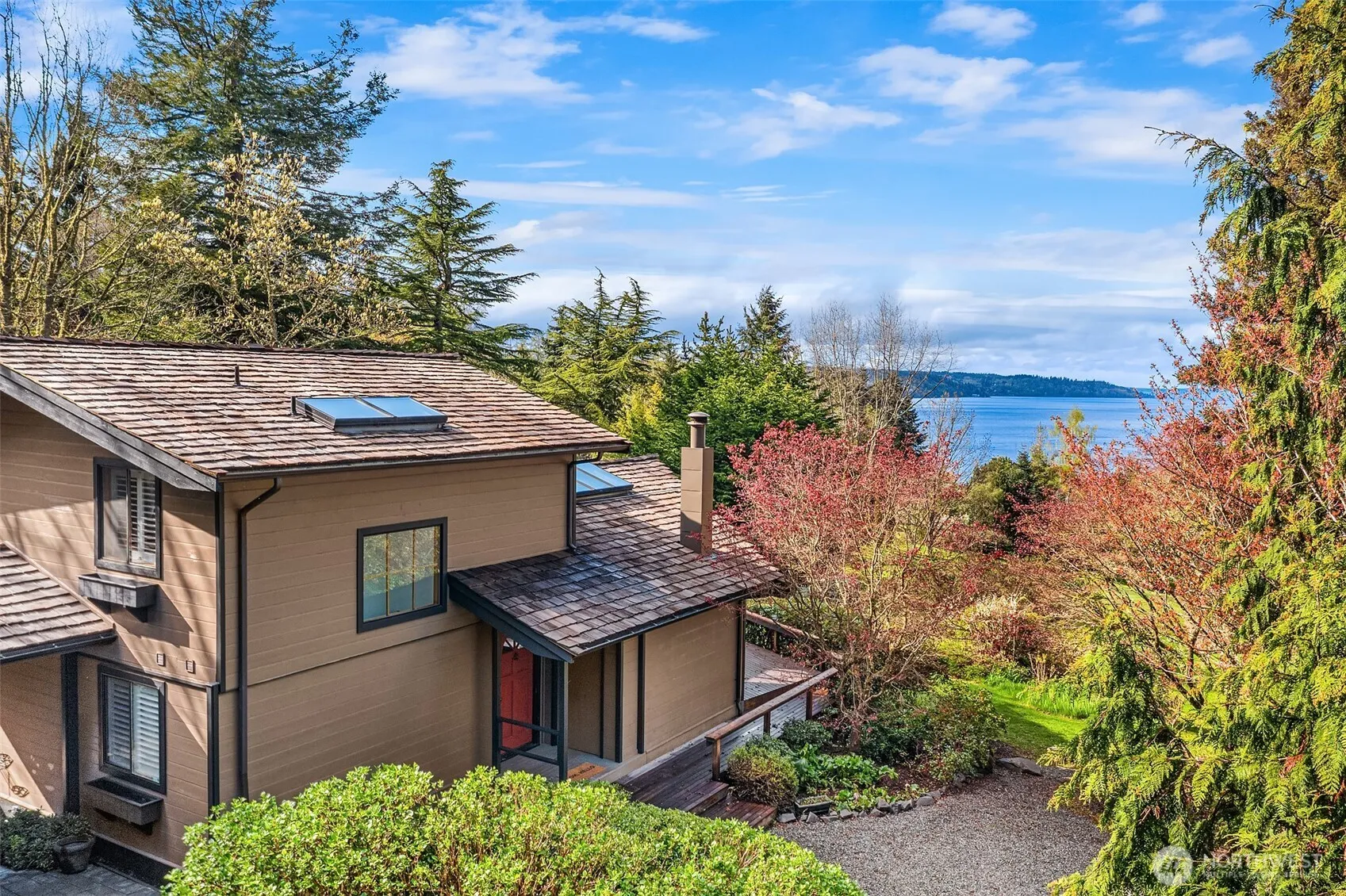 Perched on rolling green acres that gently slope toward expansive views of the Sound, Olympic Mountains, and Seattle skyline, Bellavista, a 1.93-acre retreat, is pure Northwest magic. Vaulted ceilings, skylights, and walls of windows fill the home with light, while warm cedar finishes and vintage tile details add timeless charm. A main-floor primary and glass-enclosed sunroom offer comfort and character. Outside, mature landscaping, fruit trees, expansive view-facing decks, and versatile outbuildings create a perfect blend of beauty and function. Indoor-outdoor flow and an open-concept layout are perfect for entertaining and soaking in the stunning views. Located in a peaceful North Maury setting—just 7 minutes from town, yet a world away.