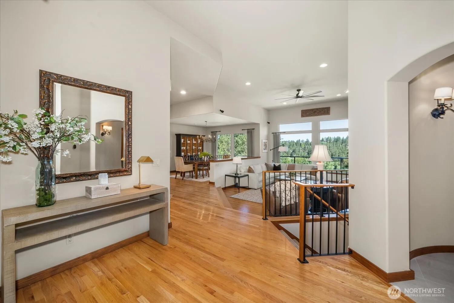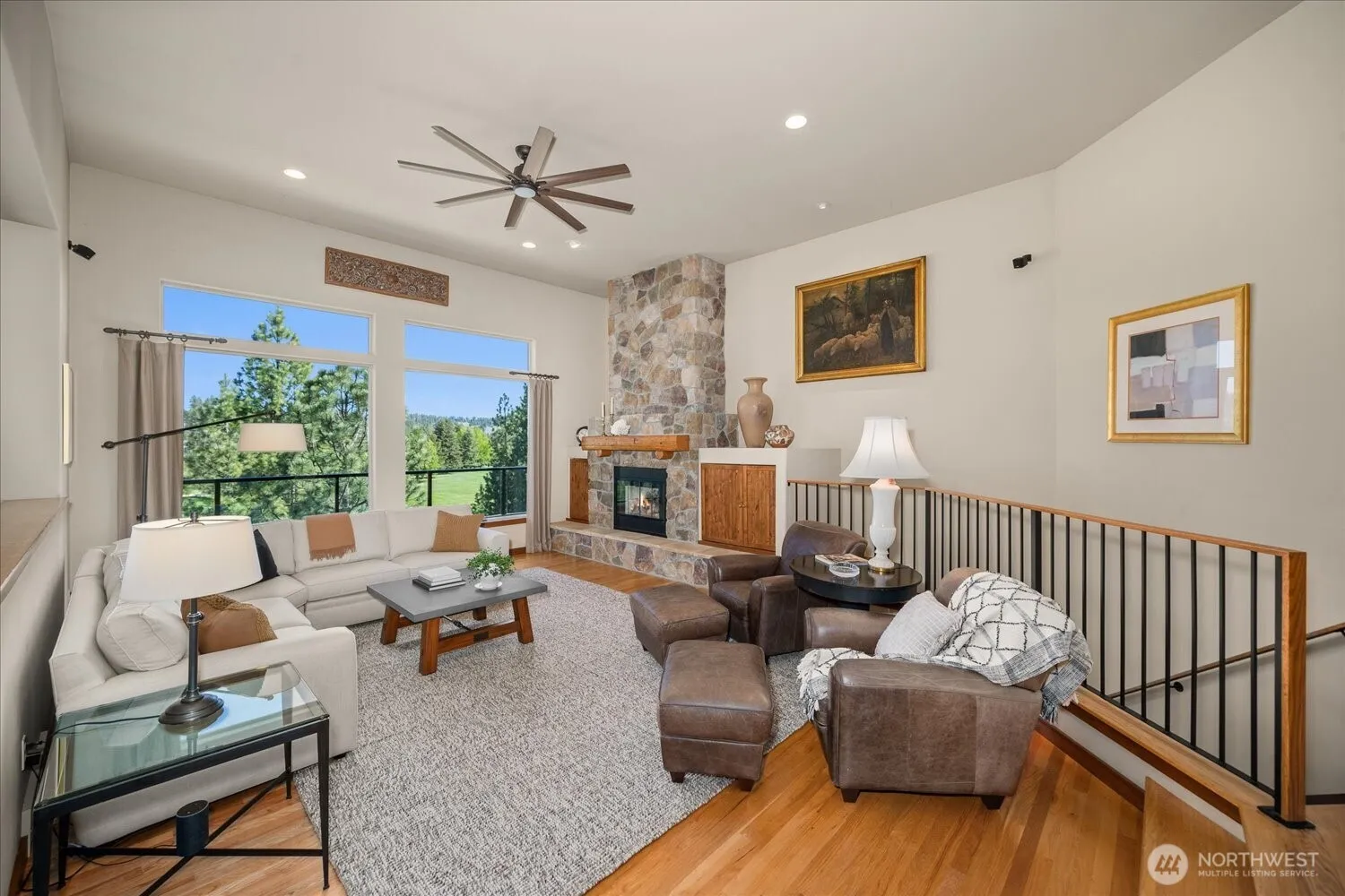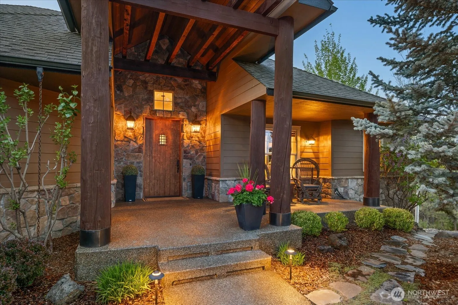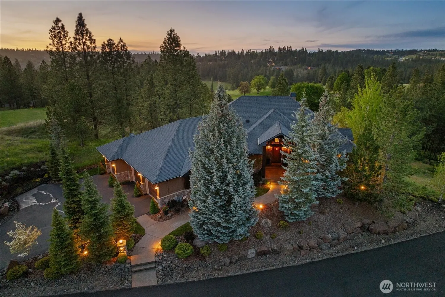 Perched above Latah Valley’s Signature Hole 5, this custom residence showcases refined craftsmanship & uninterrupted views from every room. With 4 beds, 2.5 baths & 4,590 sq ft, it offers space, serenity & distinction. The designer kitchen boasts soapstone counters, beamed ceiling, pantry & large island. A floor-to-ceiling fireplace anchors the living room, opening to a covered deck overlooking the fairway. The primary suite offers private deck access, a spa-like bath, walk-in shower & vestibule entry. Downstairs: media/game room, gym, & wet bar. The 4+ car garage (1,396 sq ft) includes storage & workshop space. Located at the Ridge at Hangman—just 15 minutes to downtown Spokane and the airport.