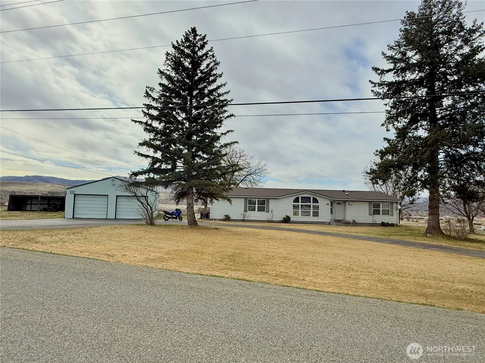 OMAK – AMAZING RIVER VIEW! 3 parcels totaling over 4.5 acres leading all the way down to the Okanogan River. Views of the Omak Stampede & Suicide Hill, Omak Mountain, territorial, & the valley! Sanctuary location w/lots of wildlife including deer, turkeys, hawks, eagles, & more. 1848sqft MH 3 bed/2 full bath w/mudroom, kitchen w/breakfast bar, – all appliances stay, den/office, living room, primary w/en-suite double sinks & garden tub, skylights, two additional bedrooms, & full bathroom. Outstanding views from the back deck. 2 car garage with shop & wood burning stove. Storage shed. All outbuildings have power. Fenced garden w/raised strawberry beds. RV hook up – power. Sprinkler system. Private well. Septic. $360,000 MLS-2348670/H-3651