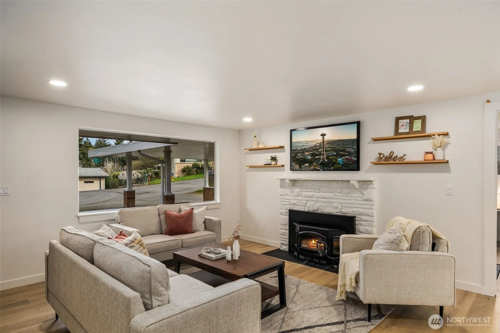 Fully permitted and newly remodeled—this home is a true gem with no corners cut! Enjoy a thoughtfully designed layout with generous closet space and plenty of storage, plus an open living area ideal for entertaining complete with a fireplace Enjoy larger-than-average bedrooms and a charming sunroom perfect for unwinding or a formal dining room. Enjoy a luxurious primary suite or second living space with wood-burning fireplace, expansive closet, and private entry—ideal for an MIL setup or added privacy. The private backyard and quiet dead-end street add comfort and charm.