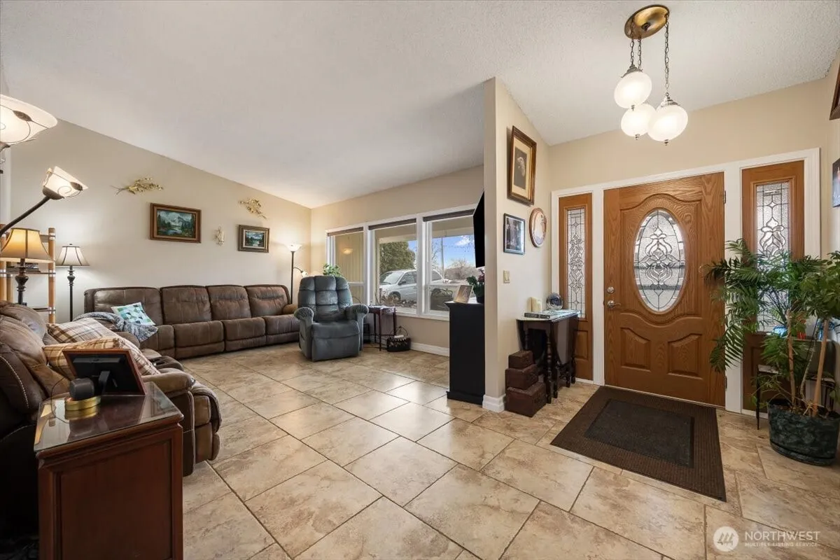 Wonderfully spacious & thoughtfully designed home! W/ features like vaulted ceilings, abundant natural light, & multiple living spaces, it seems perfect for both relaxation & entertaining. Updated spacious kitchen with insta hot water and filter, off lg dining area. Primary ste w/new handi-cap walk-in shower, dual vanities, his & hers closets & slider door to your outdoor living space, 2 bdrms sharing bathroom. Outdoor space with a covered patio and hot tub setup. The practicality of features like the oversized garage w/ workshop & built-in ladder for additional storage, RV outlet, and no-step entry shows attention to both convenience and functionality. Newer a/c & furnace unit, new water softner, 20×10 storage shed w/ shelving & much more.