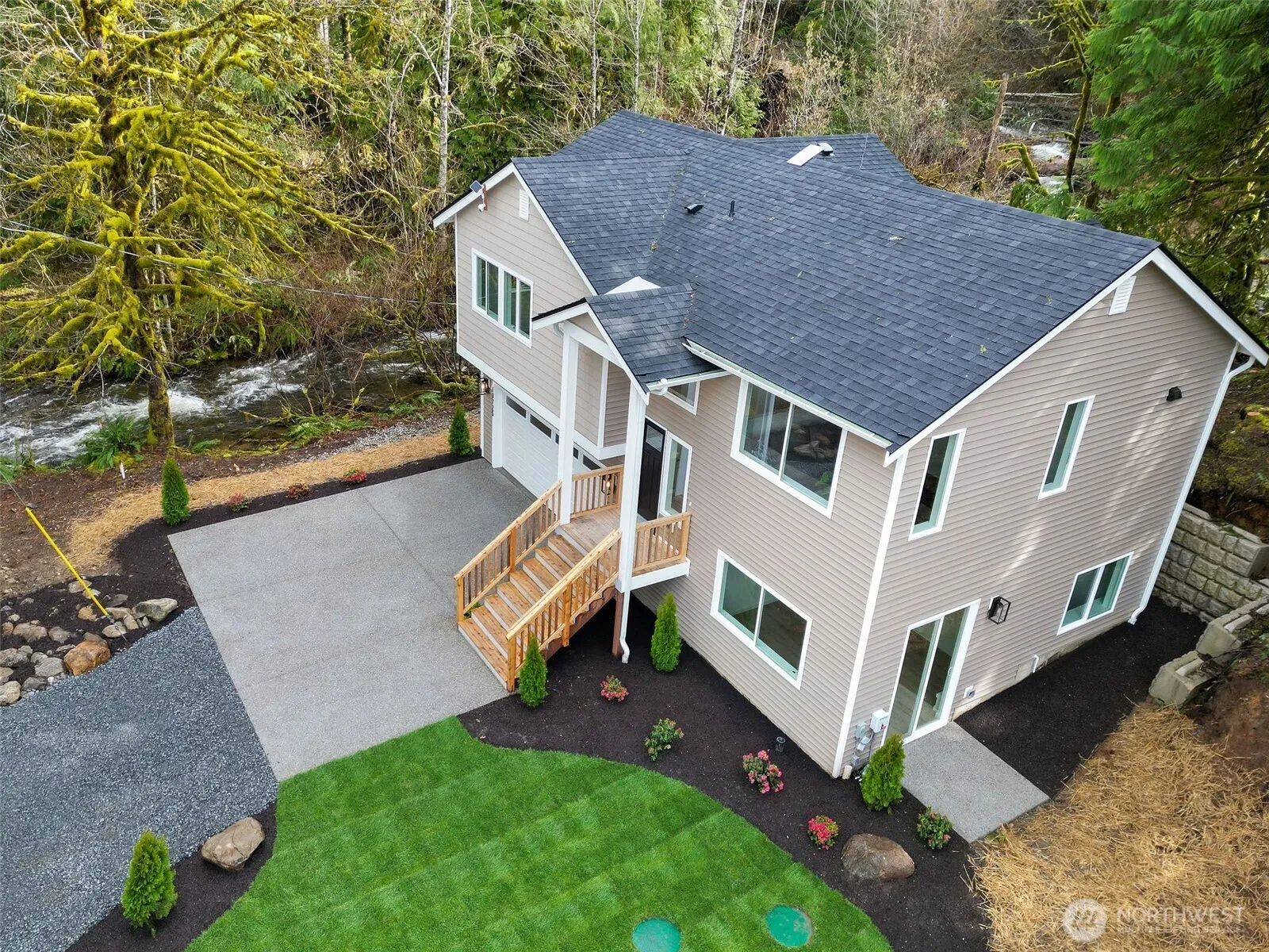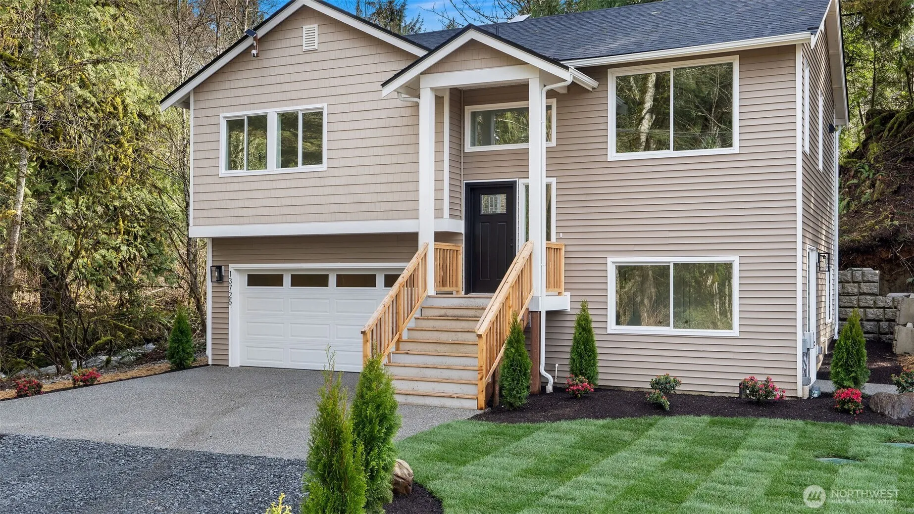 You will love the creek adjacent to this property! This gorgeous home has chef’s kitchen w/big island, quartz counters, & stainless appliances, including fridge. Great room has cozy fireplace & is open to the kitchen & eating area. Covered deck off the kitchen is perfect for relaxing or entertaining & wonderfully private. Primary bedroom offers a walk in closet & spacious bathroom with dual vanities quartz counters & undermount sinks. Main bath also has dual vanities, plus soaking tub. On the lower level you will find a 3/4 bath w/laundry, & bonus room that has so many possibilities such as an office or guest room. Plus there is a spacious family room. Mini Splits keep you comfortable year around. Garage prewired for EV.