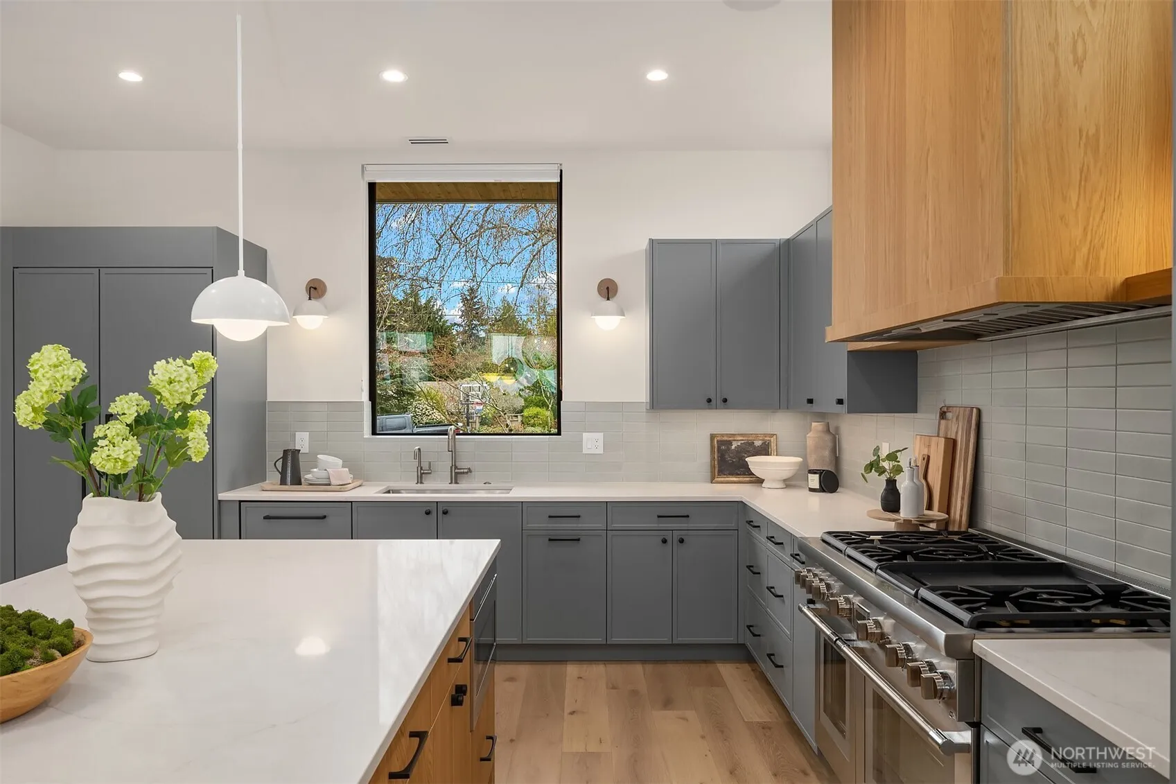 Experience luxury on MI with this chic, modern masterpiece, situated in a quiet cul-de-sac, offering stunning views of Lake Wa, the Olympics, & the city. The sleek open-concept layout is ideal for indoor/outdoor entertaining, boasting a chef’s kitchen w/designer touches, quartz counters, & Thermador appliances. Unwind in the opulent primary wing w/spa-inspired bath, heated floors & walk-in closet. Additional highlights include: radiant heat throughout, main floor den/5th bedroom, media/rec room w/wet bar, 2 outdoor entertaining areas, home gym, heated garage w/electric car charging & smart tech Lutron blinds and lighting. Just steps from South-end amenities & top-rated MI schools, this residence defines sophisticated living. Welcome home!