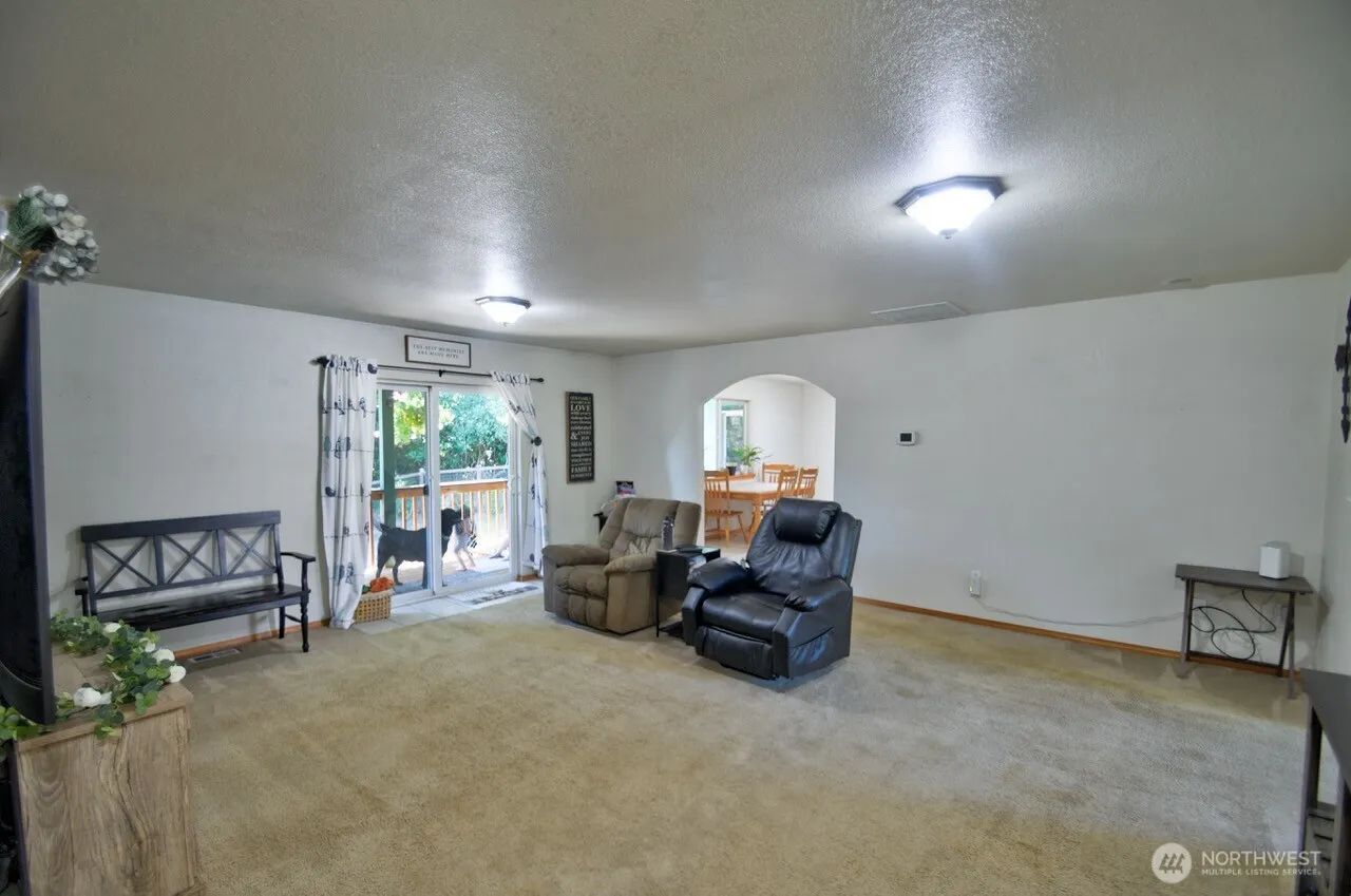 PRICE REDUCED + SELLER IS OFFERING A $10,000 BUYER BONUS WITH FULL PRICE OFFER! One level home with 2 acres just minutes from Rochester and I-5. Split bedroom floorplan. Primary bedroom with walk-in closet, 3/4 bath, and sliders to the deck overlooking the property. 2 additional bedrooms plus another finished room at opposite end of the house. Large kitchen with dining area has tile counters, plenty of storage, and pantry. Family room is in the center of the house with sliders to the back deck. Den/office just off the entry with view to the front. Back yard with garden space is fenced for pets and gates open to the park-like property inclusive of storage shed and play structure. Extended front porch, rear deck, heat pump, and RV parking.