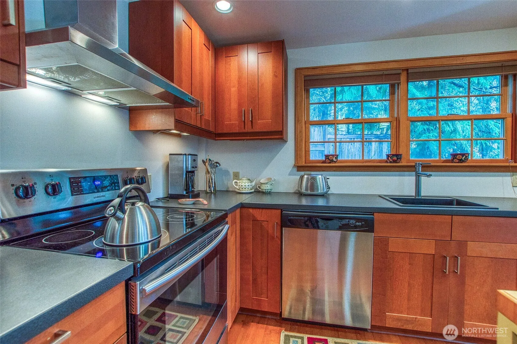 This lovely turn-key craftsman home near Obstruction Pass & Olga is the perfect island retreat or full time cottage w/ 1920 ft.², 2 bedrms/1.25 baths on a gently sloping grassy acre surrounded by mature trees. High-end finishes with hardwood and slate floors, tiled shower and wooden windows. A spacious separate dining room adjoins the chef’s kitchen with a walk-in pantry. Office space/sitting room between the 2 bedrms. The covered entry porch looks east over the lawn w/ potential for gardening or small orchard. Enjoy the afternoon light on the back west facing deck w/ bbq. A 384 sf outbuilding w/ separate 1/2 bath could be a studio/office, guest suite or shop. Enjoy everything Orcas has to offer from your own personal haven. Doe Bay Water.