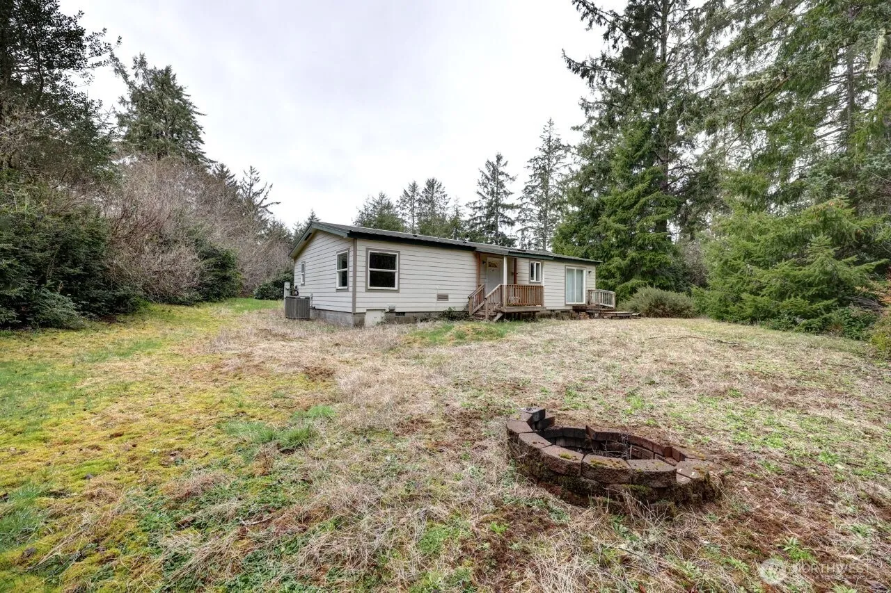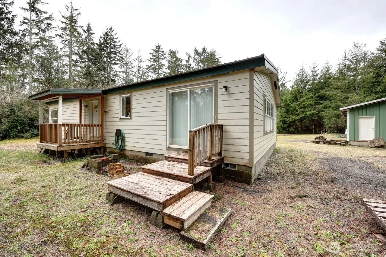 Tucked into a quiet neighborhood, this manufactured home offers peace and privacy! Situated on 1.87 acres this lovely home is light and bright with a wall of windows in the main living area, open floor plan to the kitchen, a primary bedroom with ensuite, plus 2 additional guest room and guest bath. OVERSIZED 864 square feet of garage and shop space that will put a smile on any hobbyist face!! Come relax in this wooded sanctuary on your covered deck or sit around the fire pit in the backyard. Property runs from Douglas drive to Sandridge Road. Title is eliminated.