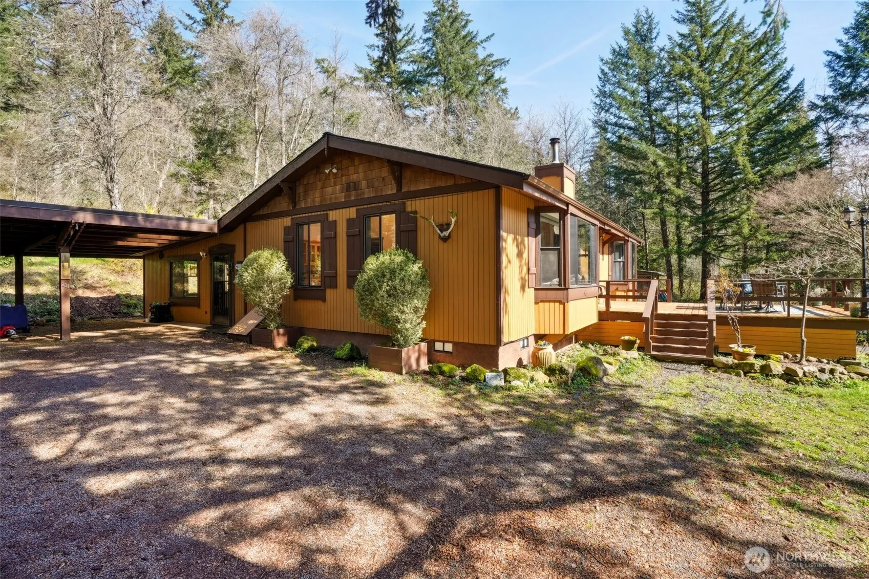 NATURE ABOUNDS – SURPRISE VIEW of MULTNOMAH FALLS TOO! Amazing Tranquil Setting – Like your own Private Retreat! One-Level Home with just a few steps. Located on 9 Acres between Washougal and Skamania in the magnificent Columbia Gorge. Southern exposure on your oversized deck, perfect for summer BBQs overlooking your property towards the Views. 4-bedrms 1.5 baths and Carport. Even room to build a Shop or an Yurt if you want. Private location at the end of the private road. 2023 Roof. Private Well and 2 Shared Springs. GET OUT OF TOWN and COME BACK TO NATURE…WELCOME HOME!