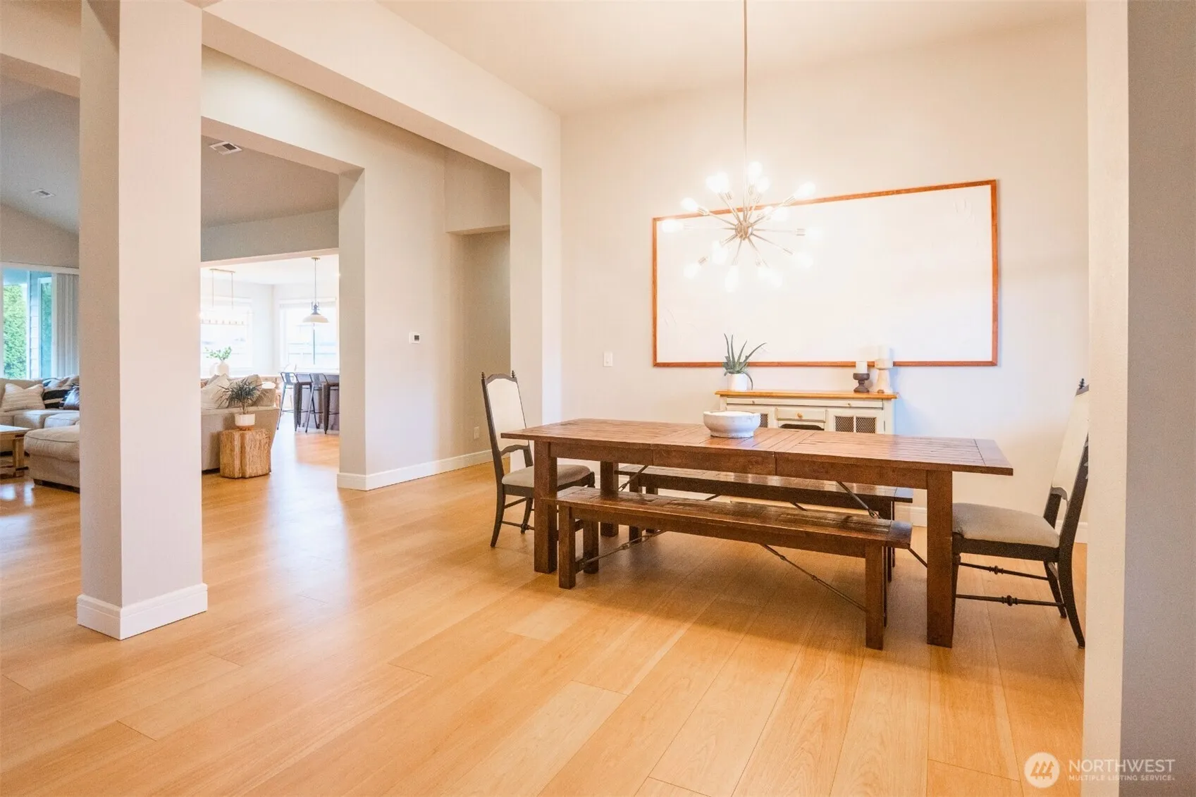 This coveted Brantley floor plan in the sought after Elk Run neighborhood boasts 3,400+ sqft of unparalleled space & luxury. Discover a remodeled Chef’s kitchen, overlooking a vaulted Great Room featuring a grand, tiled gas fireplace. New flooring throughout the main rooms elevates the elegance. The main level primary suite is a true retreat with dual walk-in closets & a spa-like en suite. Two additional bedrooms, a den, two dining rooms & utility room complete the main floor. Upstairs, find dual bonus rooms & a full bath, ideal for flexible living. Enjoy outdoor relaxation with 2 covered patios & a breathtaking Mt. Rainier view out front. The fully fenced yard, mature privacy trees, low maintenance landscaping & AC upgrade ensure comfort!