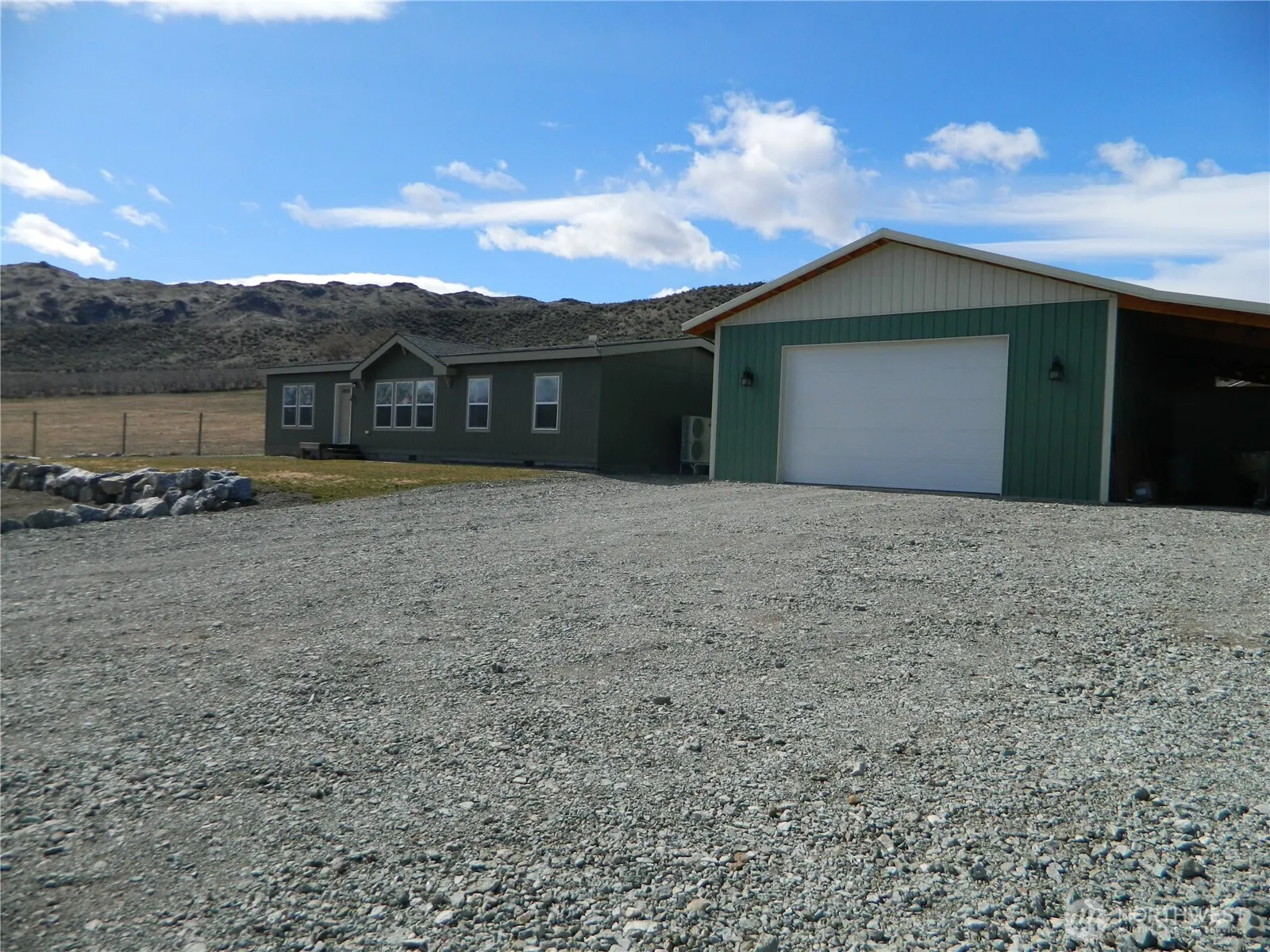 5 irrigated acres with a beautiful 3 Bdrm 2 Bathroom 2023 Model Champion home. Large shop concrete floor insulated and sheeted. Fenced very usable 5 acres, fenced garden space, covered trex deck, island kitchen open to dining and living room. No expense spared in completing this property, turn key home, shop and insulated storage outbuilding. Large rockery borders yard space and parking area, individual private well. Aprox. 5 miles from Tonasket and short drive to public grounds for recreational activities. Great views of the surrounding terrain, peaceful setting.