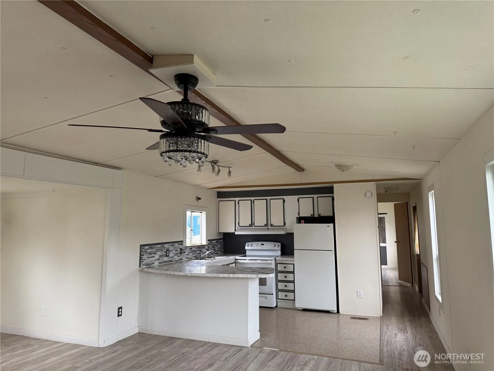 Newly remodeled manufactured home at the Timberland Park. As you approach the home you will see the new siding and TPO Roof! Entering the Kitchen and Dining Room you will feel how spacious the home is. The kitchen is inviting with a middle island for gathering and prepping meals. Living Room will be a central part of the home for entertaining. Two bedrooms and a remodeled bathroom will round out this nice manufactured home in a quiet park setting.