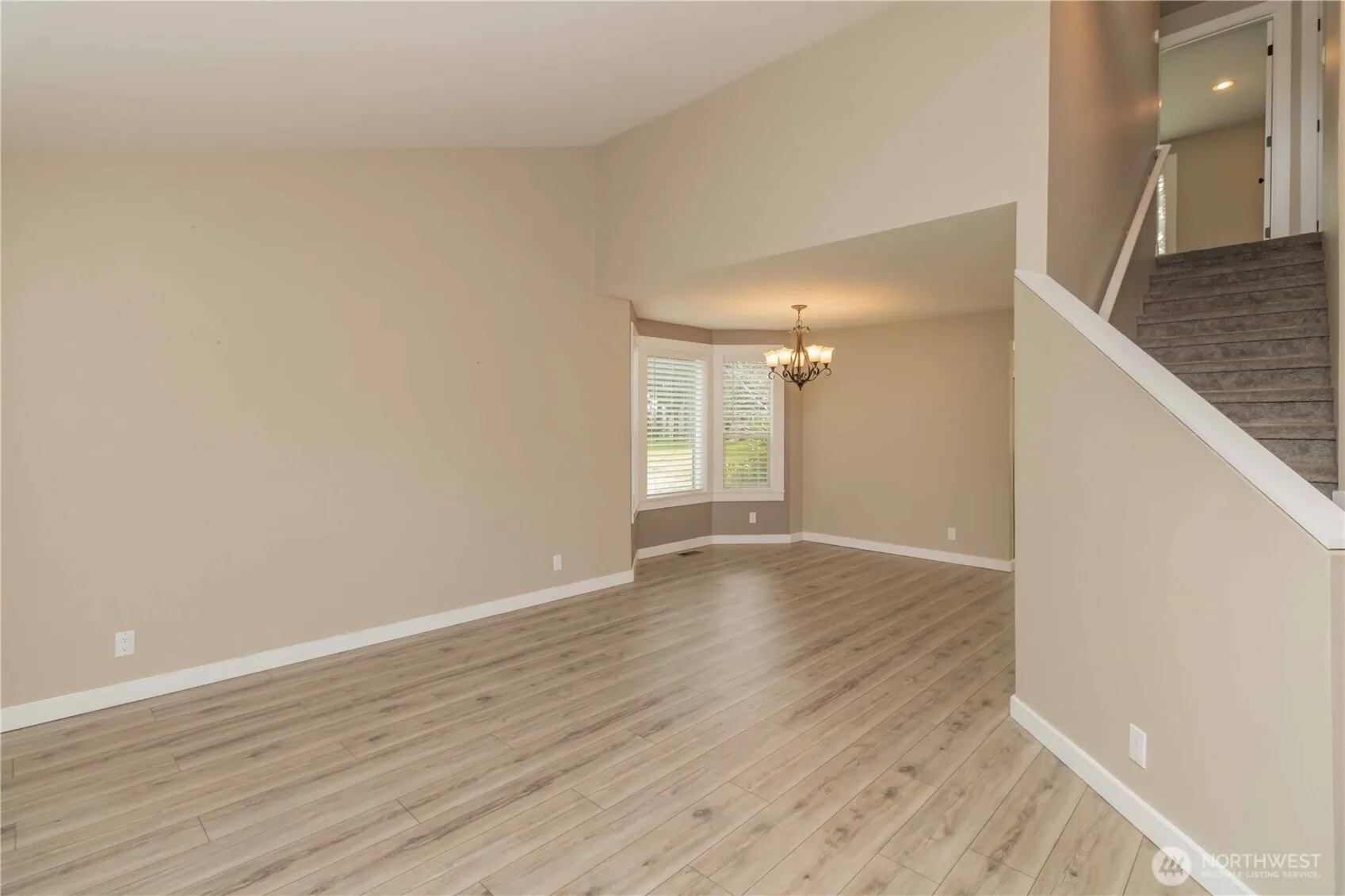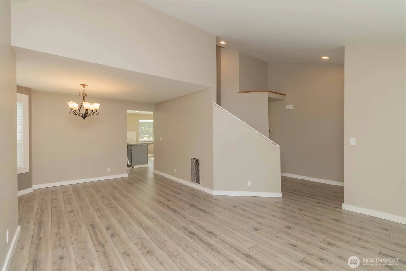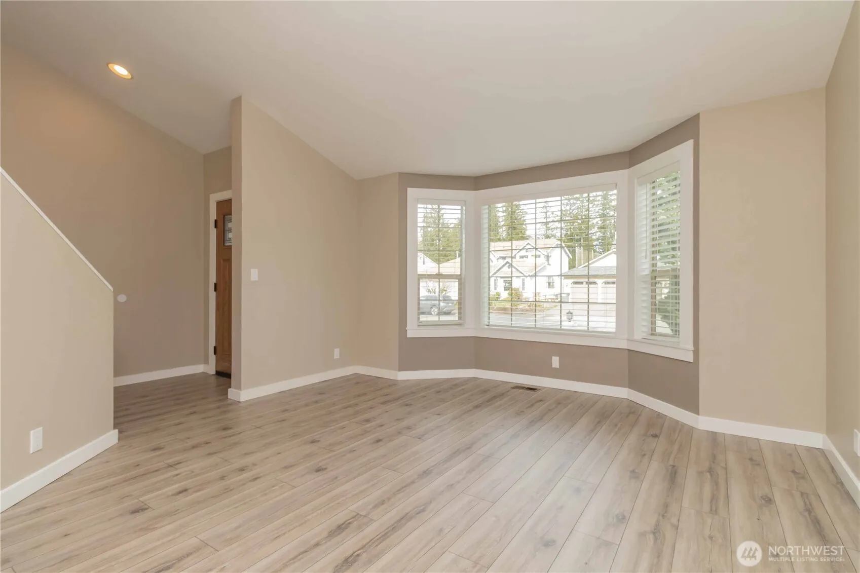 Perched along the 13th Fairway of the Lake Wilderness Golf Course, this home boasts tasteful updates throughout including Hardi Plank siding in 2022 & new roof in 2023. Inside you are met by vaulted ceilings & wood laminate flooring throughout the main level. Upgrades in the kitchen include granite countertops, subway tile backsplash, SS appliances including beverage fridge & gas range, walk-in pantry, farm sink & bar seating. The kitchen opens to a light filled eating area w/ solarium style windows & deck access. Primary suite features fireplace, walk in closet + 5pc tiled bath w/ freestanding tub & quartz counters cover the vanity offering double farm sinks. Formal dining, family room w/ wood stove, laundry room. Heat pump. No HOA!