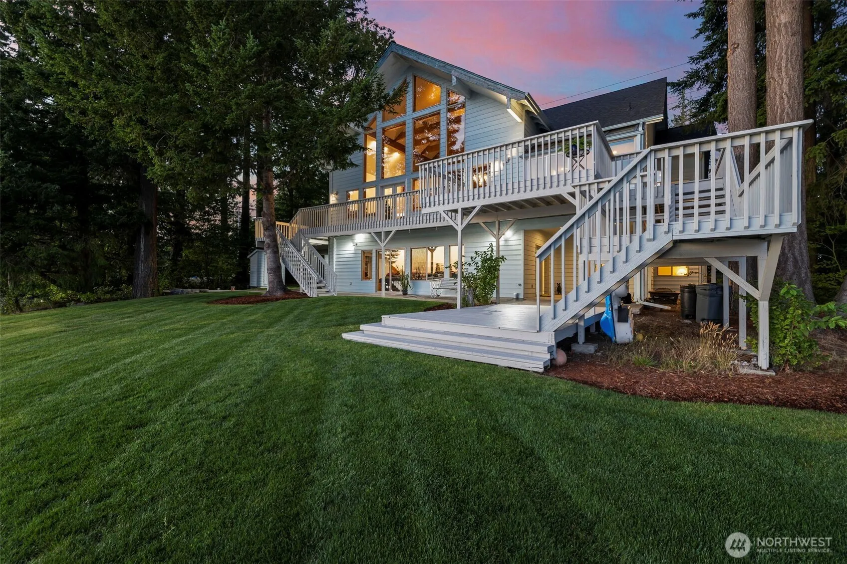Western facing luxury Lake Tapps home custom designed with 102′ of FLAT bank WATERFRONT! Enjoy the 1200 sq ft 2-story boat shop with potential for ADU, new boat lift- just 5 min. to Tapps Island GOLF COURSE. Enjoy all on main level 3 Bedrooms, 3 Bathrooms, large home office/bonus room. Guest quarters located on lower level is ideal for multi-generational living. Exquisite sunsets and abundant bird life (bald eagles, snow geese and blue heron). The splendid interior is perfect for Holidays, Super Bowl gatherings, or intimate dinner parties. Outdoor room for a sports court and many summer activities. Easy walk across the lawn to stunning Mt. Rainier views. Centrally located between SeaTac Airport, Luman Field and Tacoma Dome.