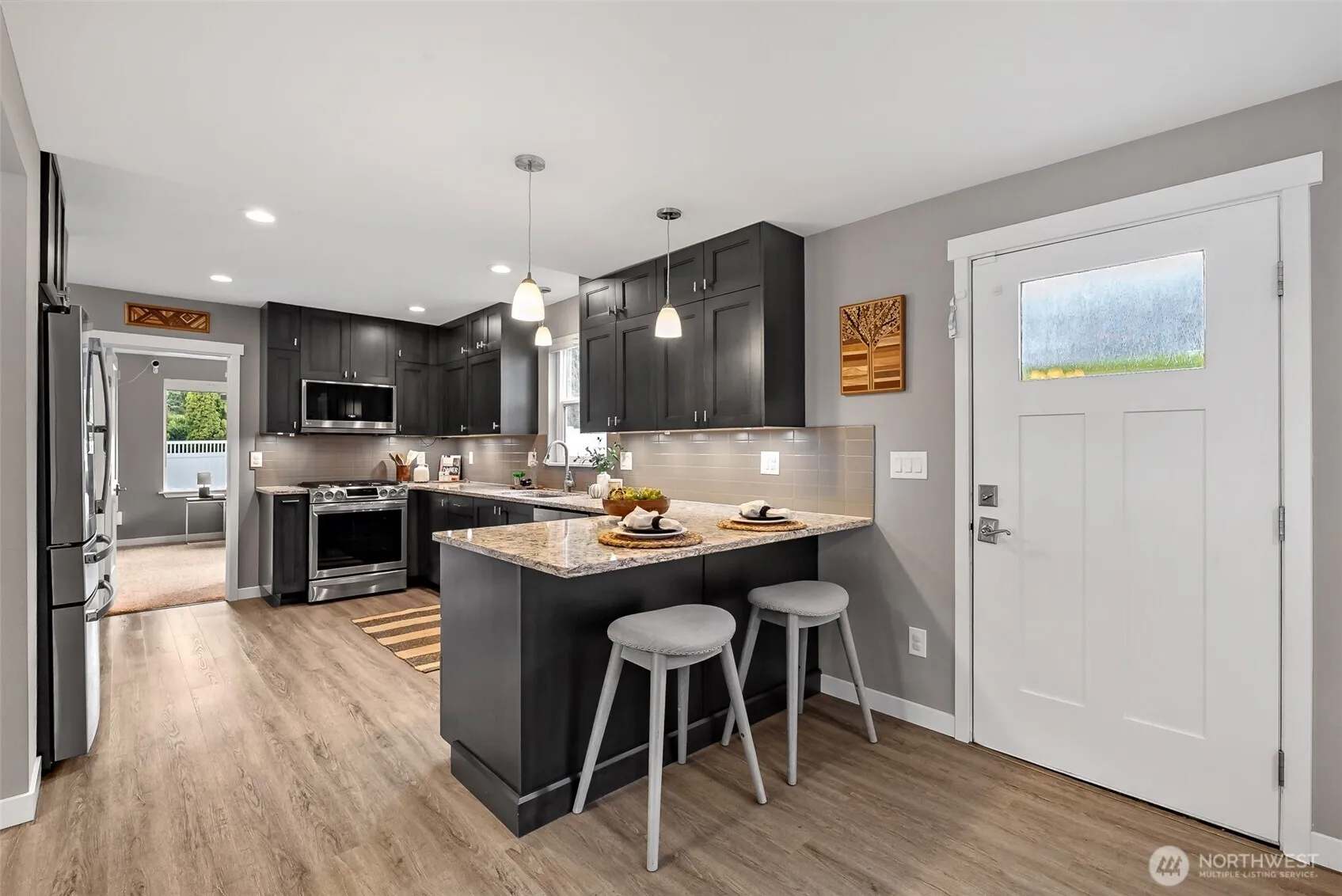 Step inside this fully renovated, move-in-ready Steilacoom home and enjoy modern comfort with timeless charm! The spacious interior features a bright, open living area, a stunning kitchen with quartz countertops, high-end stainless appliances, and a convenient breakfast bar. The main-level primary suite offers a luxurious 5-piece ensuite & walk-in closet, while three additional bedrooms provide plenty of space. Stay comfortable year-round with A/C, and enjoy the energy savings of solar panels. Outside, the huge, fully fenced lot includes covered & uncovered patios, an outbuilding, and an oversized 2-car garage extra shop space—all just minutes from parks, shopping, dining, Puget Sound beaches, as well as JBLM! Don’t miss this opportunity!