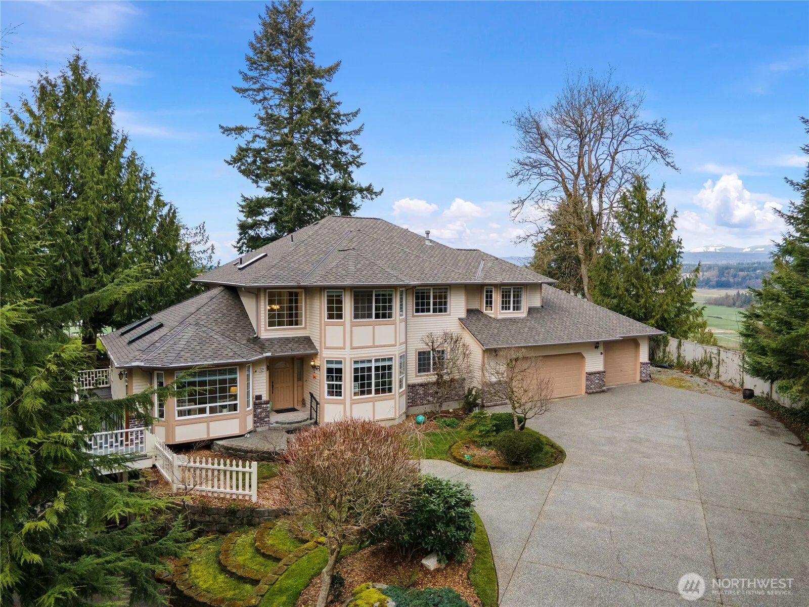 Relish waterfront vistas in Silvana Crest Estates, 5+ acres of riverfront property! This custom home sits in a gated community offering sweeping views of Puget Sound, Stillaguamish River, mountains & breathtaking sunsets. 5 bedrooms (3 bed septic), vaulted ceilings, granite counters, new custom cabinetry throughout, masonry fireplace & a FULL apartment downstairs! New lifetime roof, HVAC, water heater & appliances too. Enjoy the fenced back yard, a back up generator, a spacious 3-car garage & an independently-powered RV parking space providing plenty of protected parking for your cars and RV. Embrace luxury, beauty, and privacy in this elegant yet comfortable home on your own secluded bluff. Be sure to see the virtual tour for floor plan!