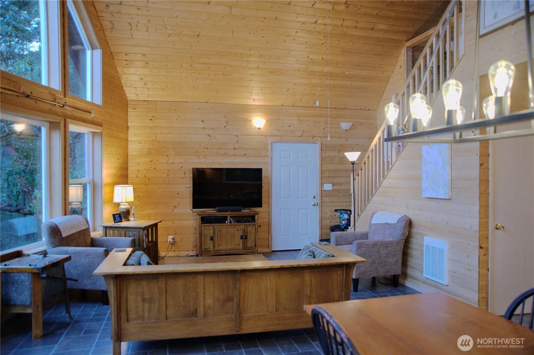 Experience just how magical (and surprisingly accessible) island life can be. This beautiful 1,350 square foot furnished turnkey home on Center Island provides comfort and charm. ½ acre lot features a 3,000-gallon rainwater system, sunny south-facing exposure, and water views. High speed internet is available. A golf cart is included for easy island access. The finished room above the workshop is perfect for guests or a home office. Ample dry storage underneath the house. Enjoy community docks, airstrip, clubhouse, and water access. Crabbing, fishing, and shrimping in local waters!