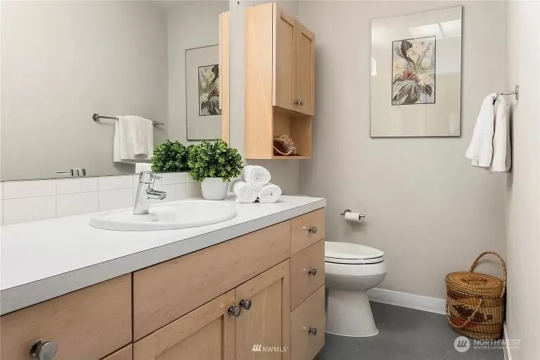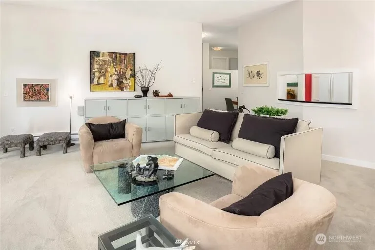 Spacious ground floor park view condo in the heart of Downtown Mercer Island. Wide plank-engineered hardwoods grace the main floor and lead to the back deck. Twelve-foot vaulted ceilings with oversized windows let the light stream into the living room. This home comes with its own deeded parking space, $30,000+ in finish upgrades, stainless steel appliances, granite and Corian countertops, and a dining room area with an open layout. Already installed blinds, and closet built-ins in the walk-in closet make a turnkey home!