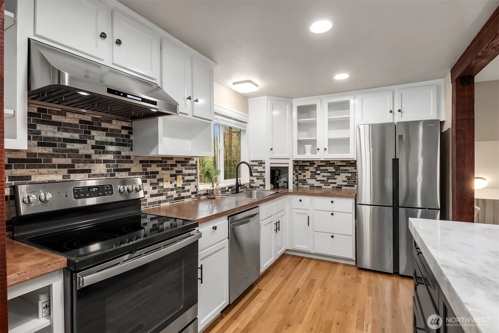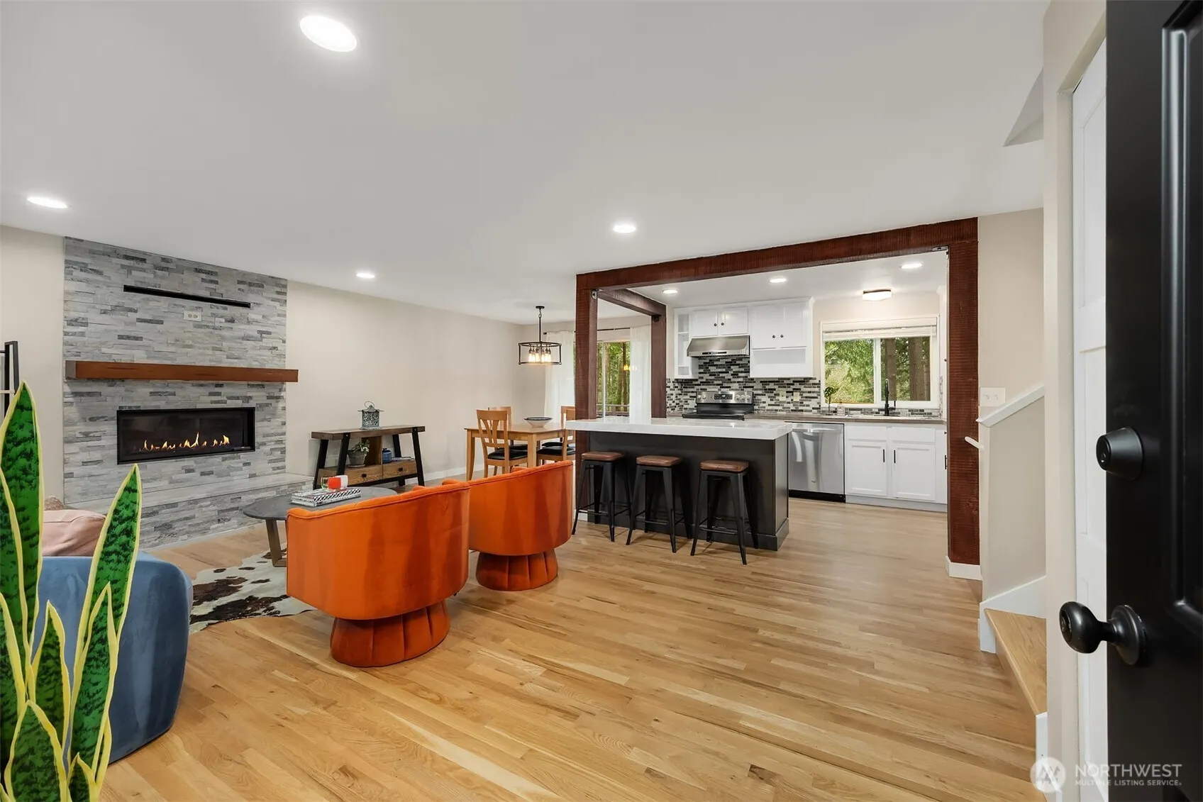 This meticulous, light & bright Lake Marcel home is perfectly turn-key. The 2023 interior remodel showcases the beautiful examples of quality, high end finishes and pride of workmanship. Let’s start with the lovely, white oak hardwood floors throughout the open floorplan. Hand stained wood beams beautifully accent and define the chef’s kitchen w/tile surround & two color cabinetry. The stunning custom quartzite island provides casual dining options & extra storage. Gas fireplace is beautifully enclosed by a full height, custom stacked stone wall and rough hewn mantle. New interior/exterior paint, roof & gutters, landscaping. Full length deck for entertaining. One short block to Lake Marcel fun; Minutes to Redmond/520. And a chicken coop!