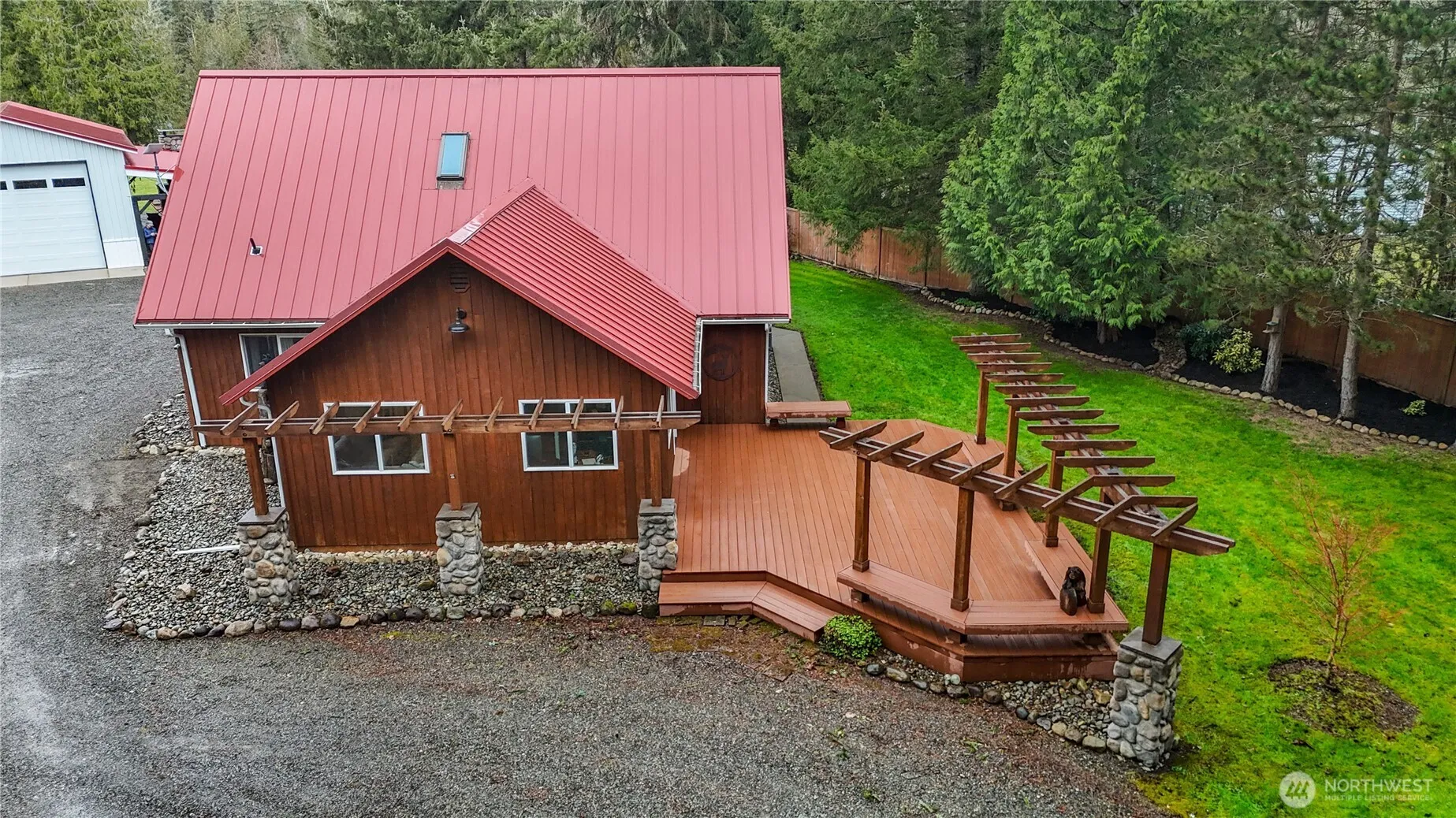 Drive through a custom cedar gate into this immaculate farm/equestrian property. Minutes from downtown Enumclaw. This updated home features 3 bedrooms, 2 bathroom and bonus room. High-end finishes throughout. Primary suite is a private retreat w/abundant closet spac., Open layout fills the home with natural light. Step onto a 40×23 patio w/stone fireplace overlooking back pastures. Oversized three-car garage w/mini-split offers space for gym or extra living area.1,500 sq.ft. shop w/two-post lift perfect for hobbies or car projects. Equestrian amenities include 30×30 two-stall barn with hay storage, tack room, and space for multiple pastures. Enjoy peaceful mountain living with modern comforts, all within walking distance of Lake Walker.