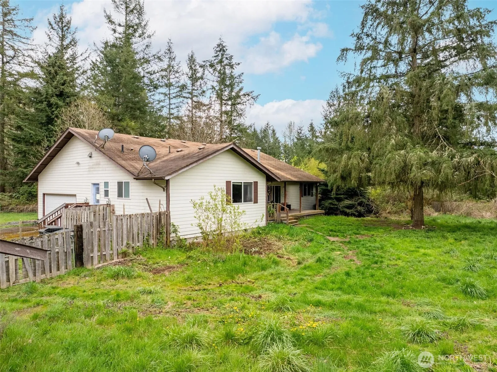 Rambler on 5 peaceful acres, just minutes from Ohop Lake! Enjoy the convenience of an attached 2-car garage and unwind in the spacious living room with a cozy fireplace and two sliders that open to a covered back porch. The kitchen features custom cabinetry, marble countertops, a pantry, and laminate flooring throughout, with tile in both bathrooms. This 3-bedroom, 2-bath home includes an *auto-wired generator* for peace of mind. Step outdoors to discover a barn/shop with metal roof, pump house, small chicken coop, and a small pond. Covered front and back porches provide year-round enjoyment. Endless potential for hobbies, animals, or your ideal retreat. Some photos digitally edited to remove personal items. *NEGOTIABLE ON CLOSING COST*