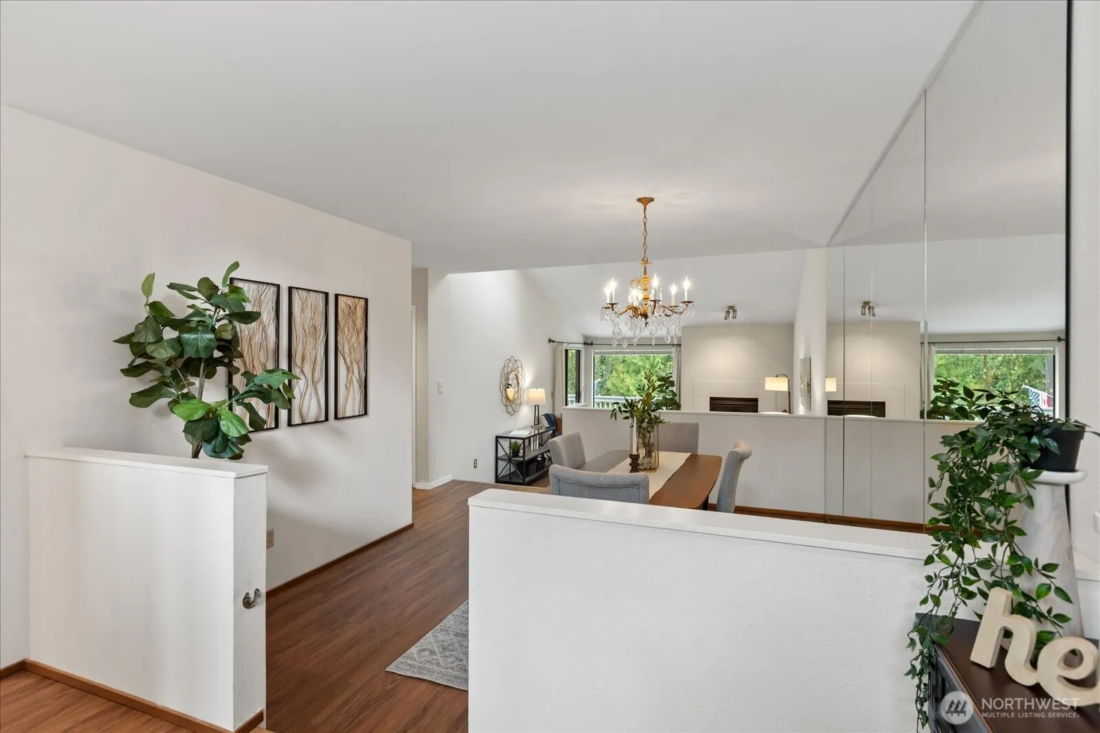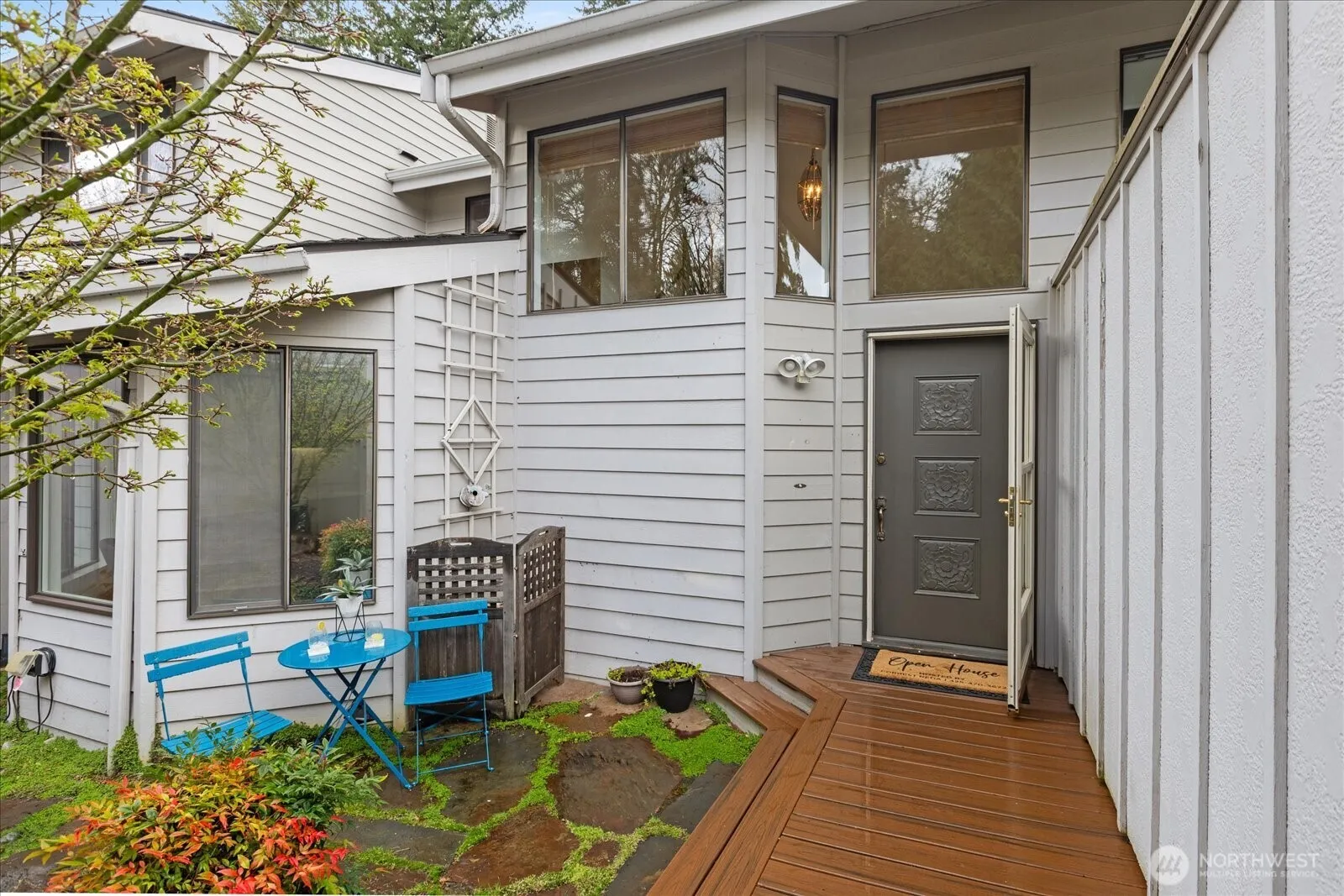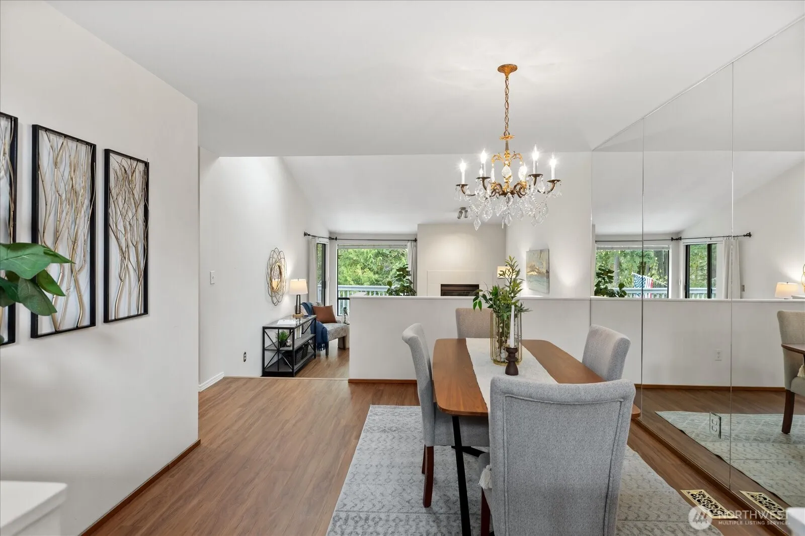 Welcome to this thoughtfully updated residence at Copper Tree in the Mill Creek Country Club. Spanning 1,586 sqft, this 2-bed, 1.75-bath home exemplifies NW living with an open layout, including a bedroom on the main floor. Updated laminate flooring guides you through the spacious main level with skylights, solar tubes and vaulted ceilings. Upstairs, the primary offers an opulent en-suite with double Corian vanities. Enjoy an indoor-outdoor lifestyle with a deck overlooking the greenbelt and a serene waterfall off the light-filled kitchen. Modern conveniences include a 2024 LG dishwasher, new furnace, and efficient mini-split system. Tranquility abounds in this serene setting, complemented by trails and proximity to Mill Creek Town Center.