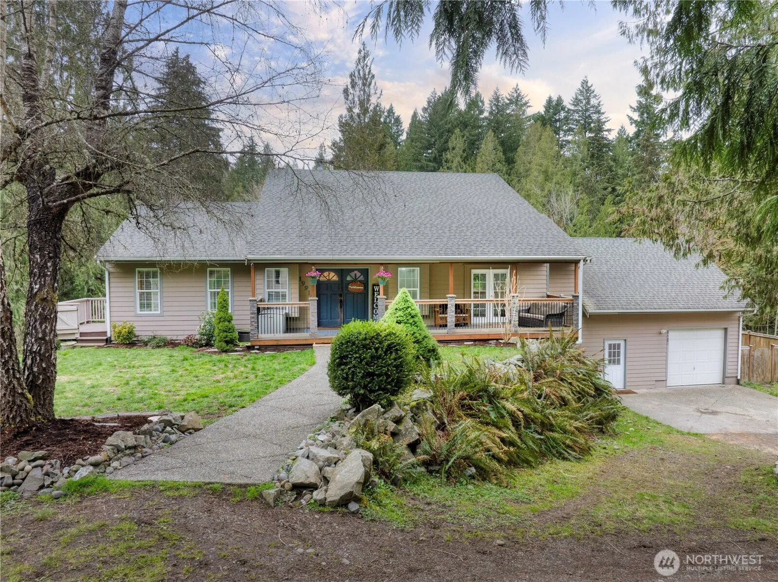 Discover your private retreat in Orting! This custom-built home sits on nearly 6 acres at the end of a quiet road. Featuring a remodeled kitchen with open concept living and dining room right off a large back deck overlooking your land. A spacious newly renovated primary bath, and newer carpet throughout, it’s move-in ready with fresh exterior paint on the way! Two potential ADUs with separate entrances offer endless opportunities. Enjoy the large shop area, trails, and access to a nearby creek for exploring. Peace, privacy, and versatility all in one incredible property!