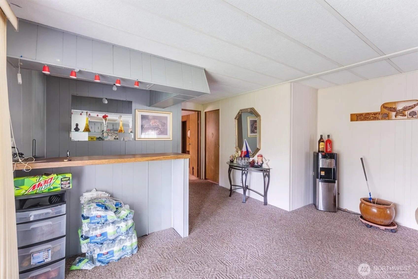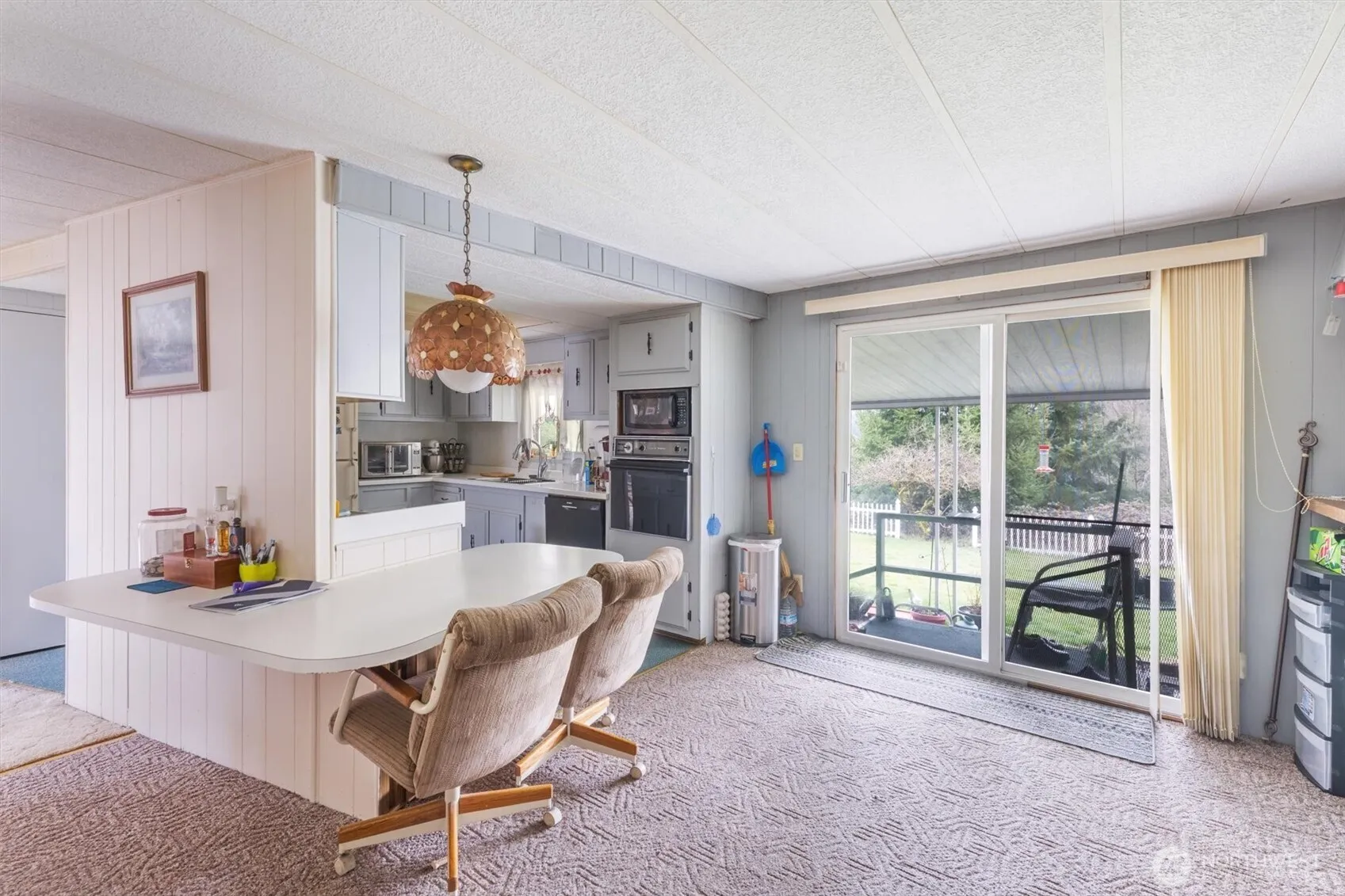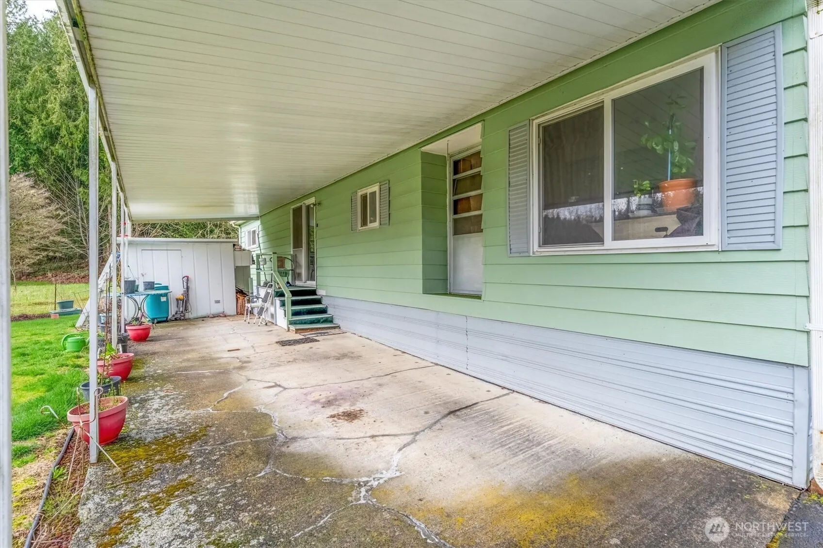 Top of the hill and end of the road – best spot in the Hazel Dell Mobile Home Park is space 20. Hazel Dell MHP is a secret gem nestled up off of Hazel Dell Rd. One of the least expensive parks in all of Cowlitz County, with space rent covering water, septic, and garbage. This unit has the largest front flat easy to maintain lawn with ZERO views of other units. Two storage sheds stay – great for the seasonal extras. Inside you will find 2 bedrooms/2 bathrooms. Primary is roomy w/mirror closet doors, vinyl windows, and full bath. Second room has door to guest bath. Floor plan offers a wet bar (coffee bar?), kitchen w/eating bar, dining room with built-in hutch, woodburning fireplace, and living room. Vinyl windows throughout home. Paved prkg.