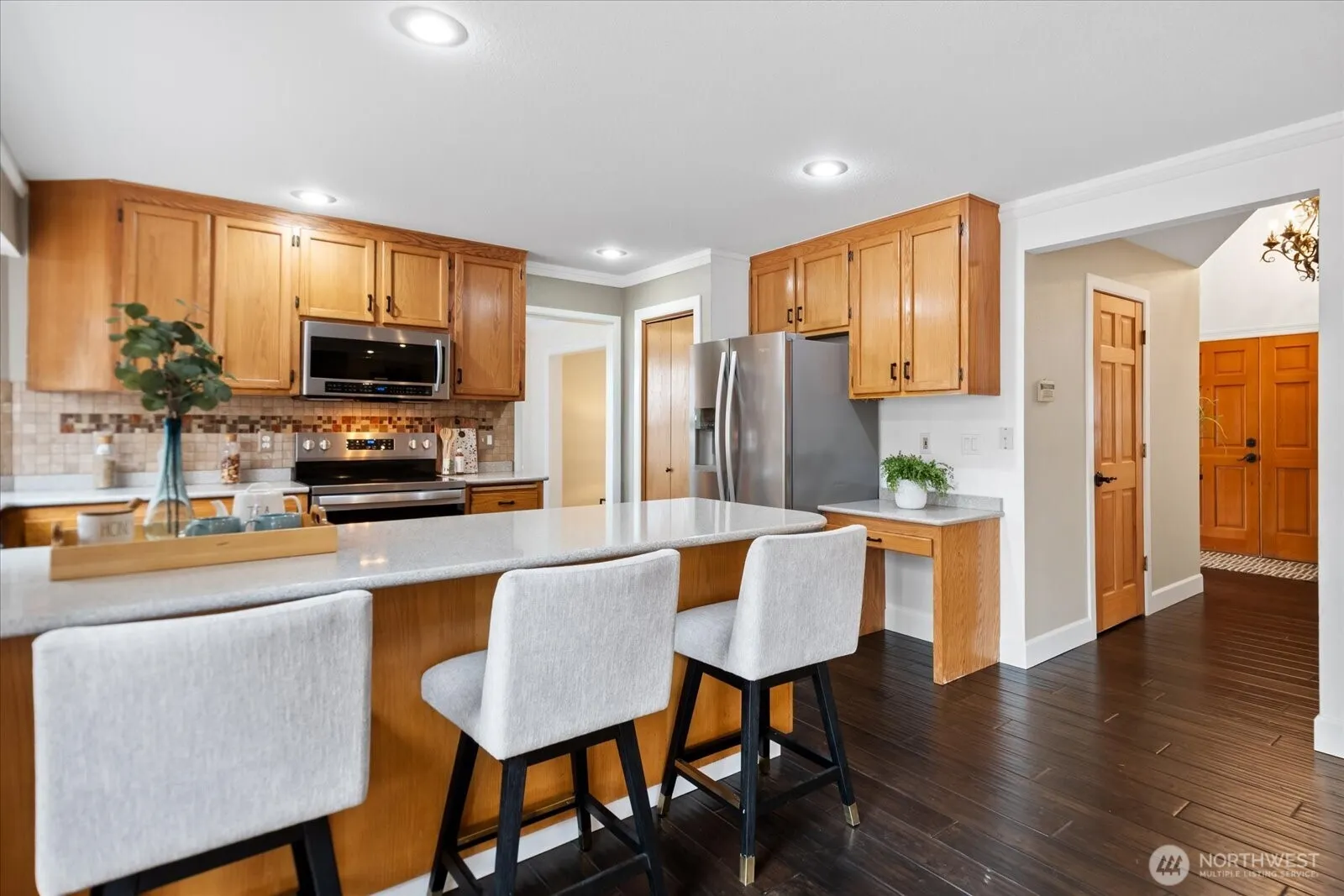 Stunning 5-Bed Mukilteo Home w Water Views. Nestled in Elliot Pointe, this pristine 5-bedroom, 3.5-bath beauty offers an expansive 3,708 sq. ft. of thoughtfully designed living space. You’ll be wowed by the fresh updates—engineered floor, stylish doors, plush carpet, elegant molding adds a modern yet timeless touch. The open-concept is perfect for entertaining, from the kitchen and family room flowing into bright/airy spaces. You’ll love the amazing deck, w 2nd story, lights-heat and breathtaking water views, making it the perfect spot for morning coffee or evening gatherings. steps below a paved firepit area, fully fenced backyard. Each inch is pristine/move in ready! Close to restaurants, award winning schools, Boeing, Whidbey and I-5.
