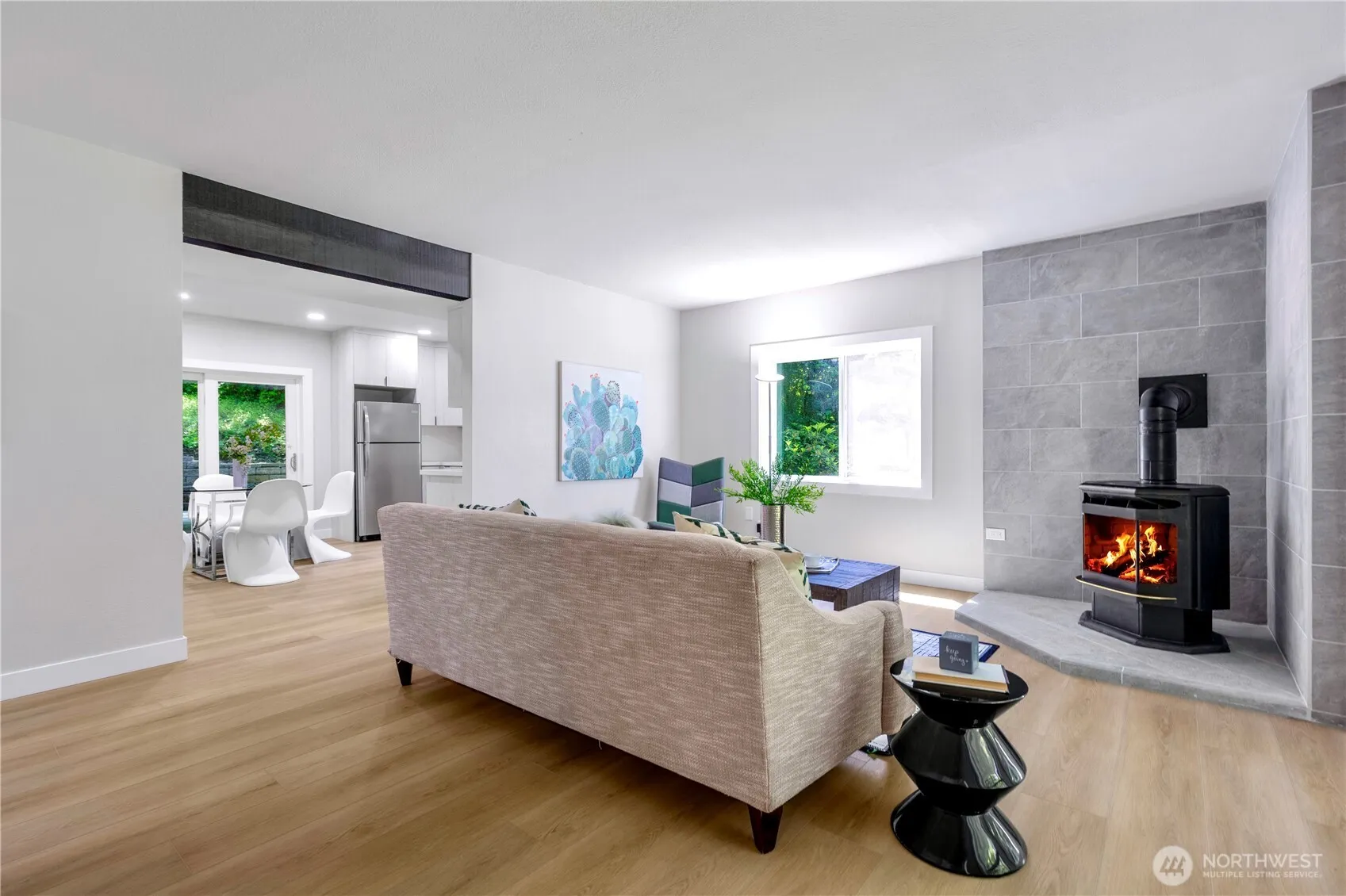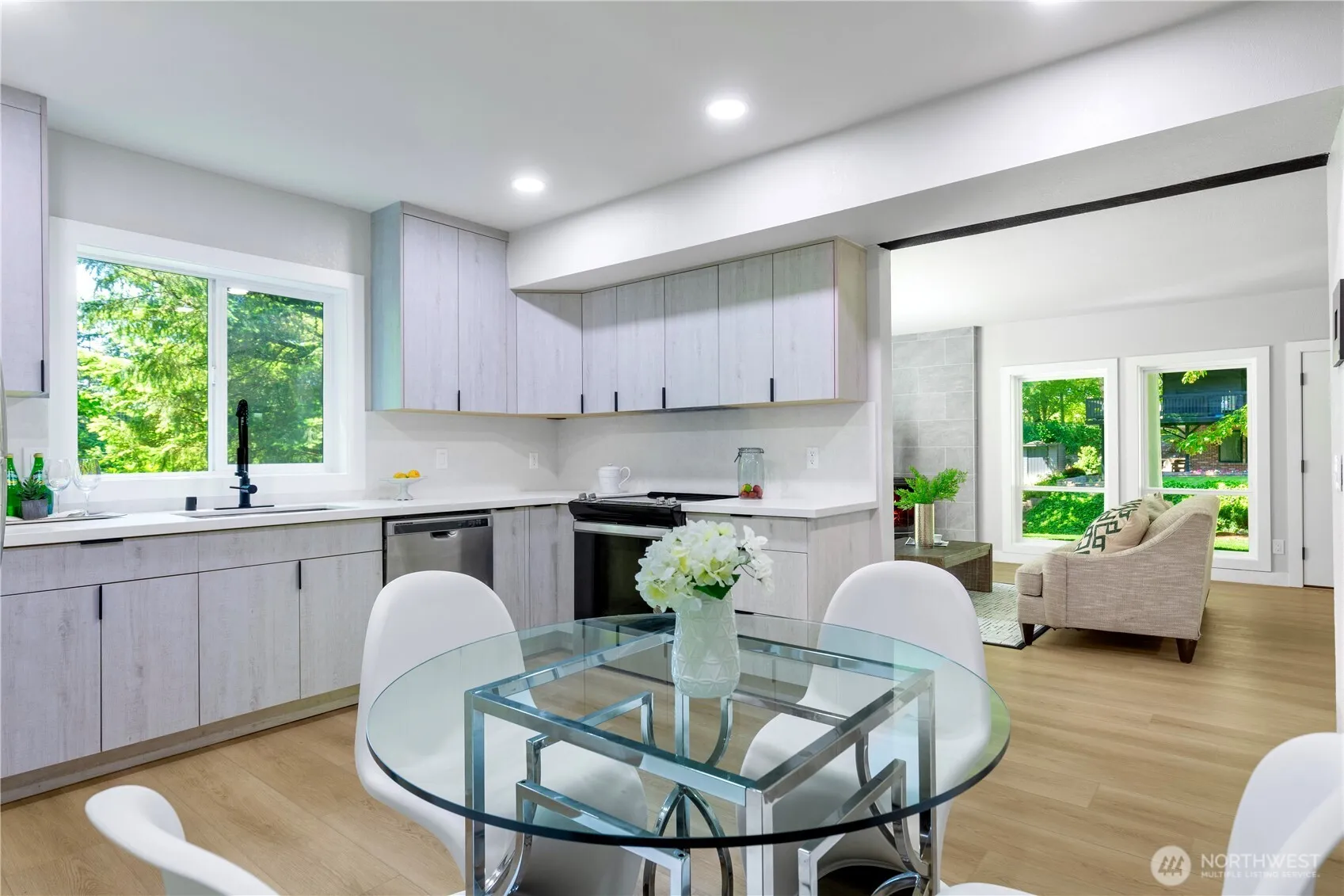 This tri-level house has been stunningly remodeled last year. Extensive renovation of two kitchens features quartz countertop, high-end cabinets and stainless appliances. New waterproof vinyl flooring throughout. Fresh paint interior and exterior. Updated bathrooms, doors, trim, double-pane windows & light fixtures. 3 bedrooms clustered together w/2 baths with primary suite w/ master bath. Gigantic entertainment room on the 3rd floor. Two sets of laundry space. Two garages can park 3 cars plus tons of RV parking space. House is located in the dead-end street!