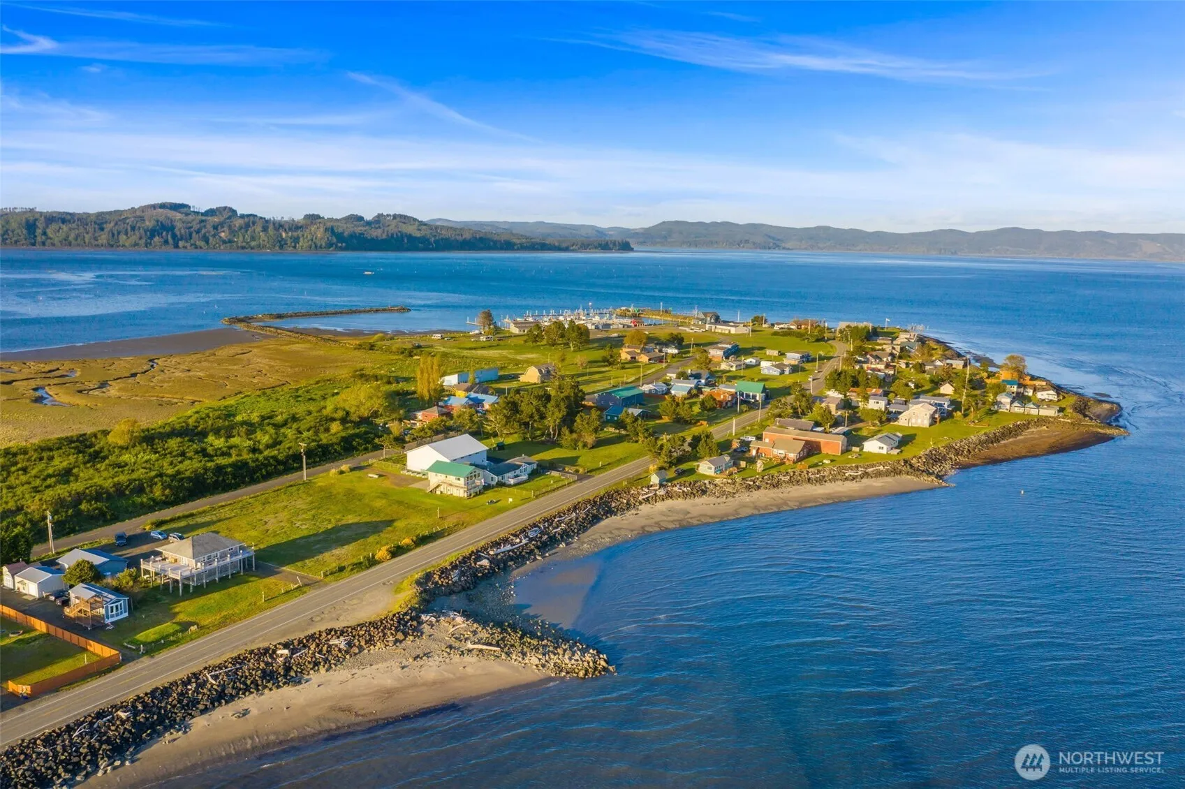 This custom built Tokeland home features spectacular unobstructed views through its south/west facing wall of windows across the Willapa Bay Estuary & out to the ocean. Perfect for a vacation home or full time living the 1,500 sq-ft, 2 bedroom, 2.5 bathroom home with its open concept great room living area facing the bay makes this a rare find indeed. You will love the custom kitchen and dinning area with stunning views for the cook, main upper level bedroom with its tiled custom 3/4 bathroom, the 2nd upper level full bathroom and bedroom with a view to the east side of the peninsular. Other features include fir & cherry wood floors and custom hickory wood cabinets, a lower level family room, a full laundry room & a two car garage!