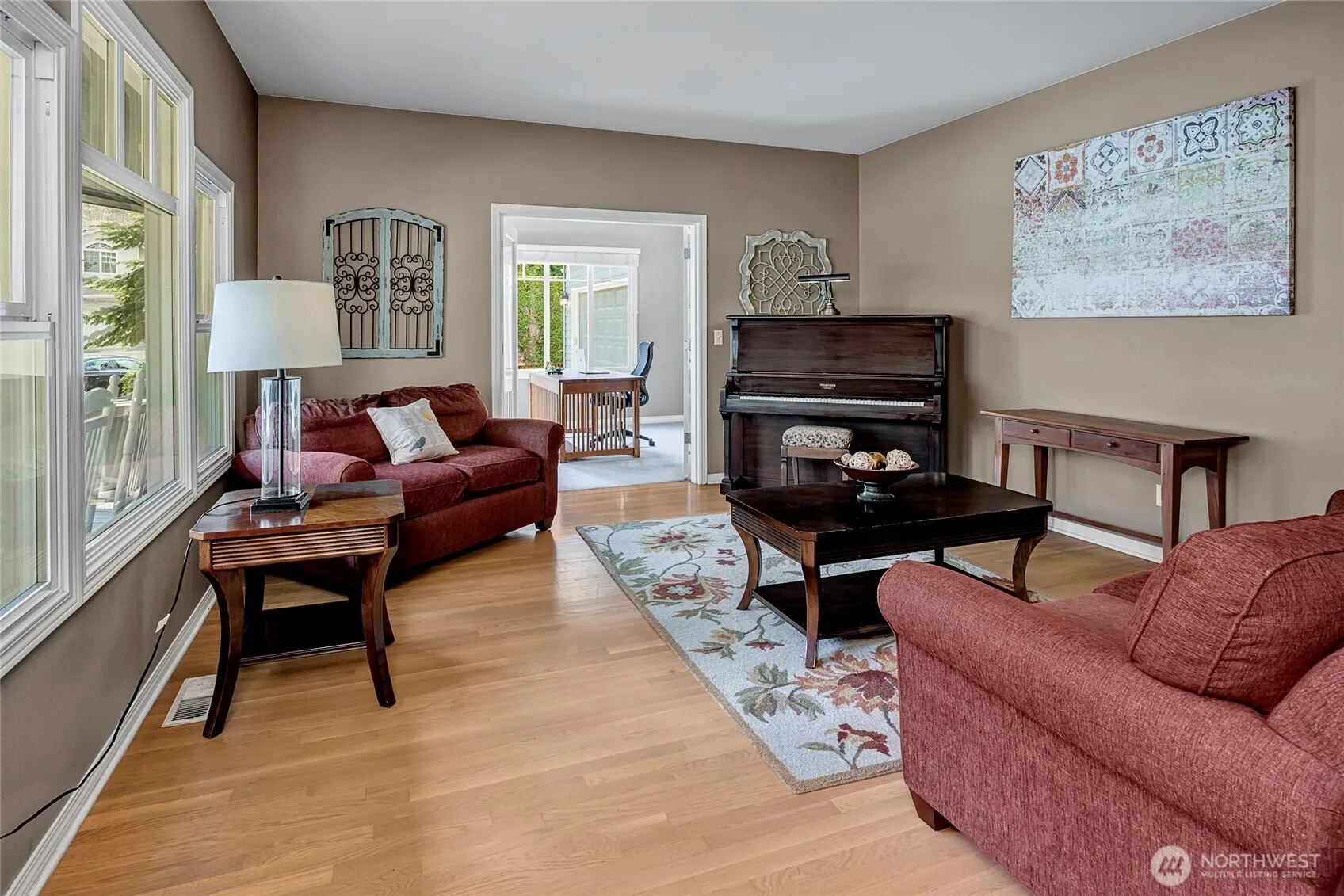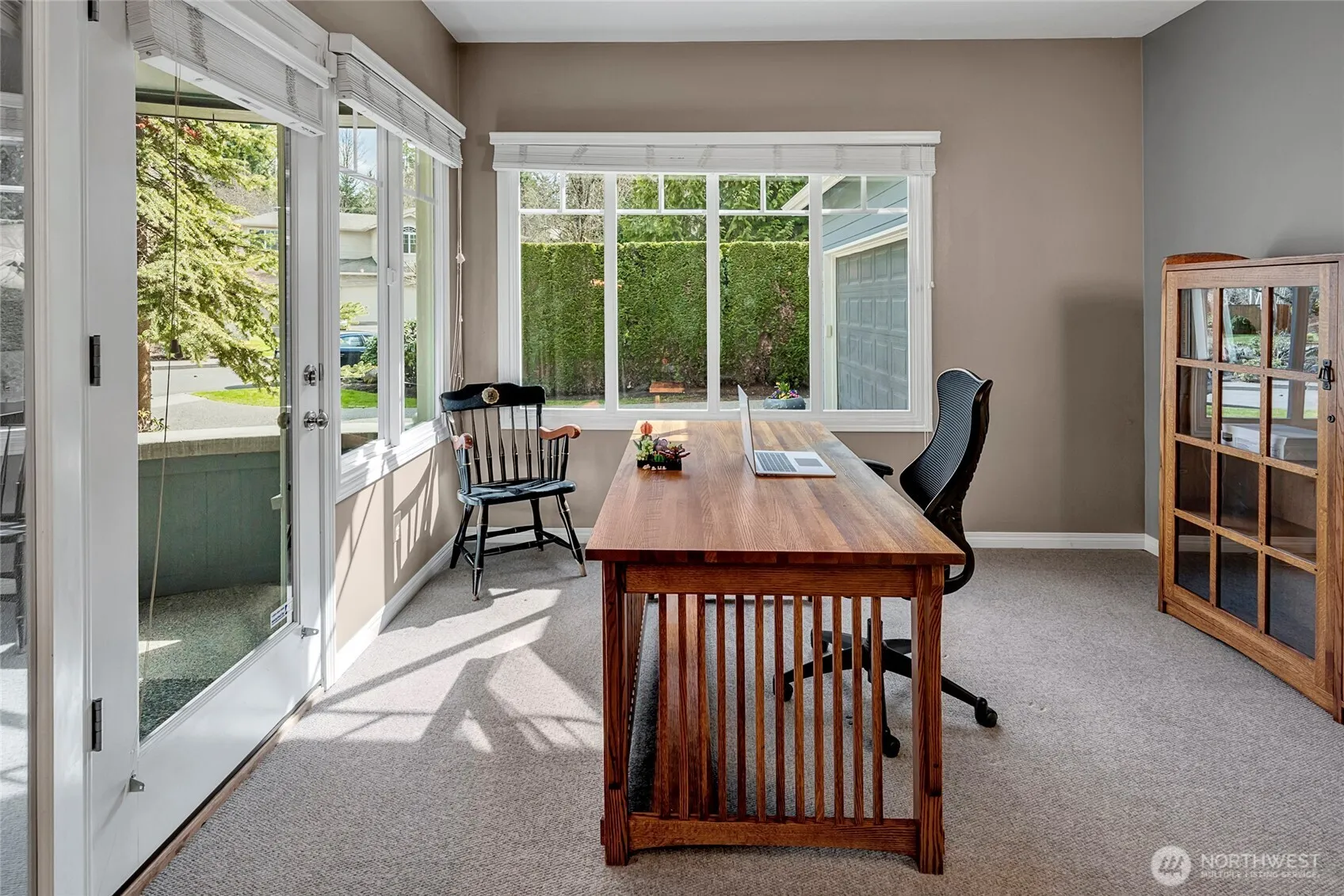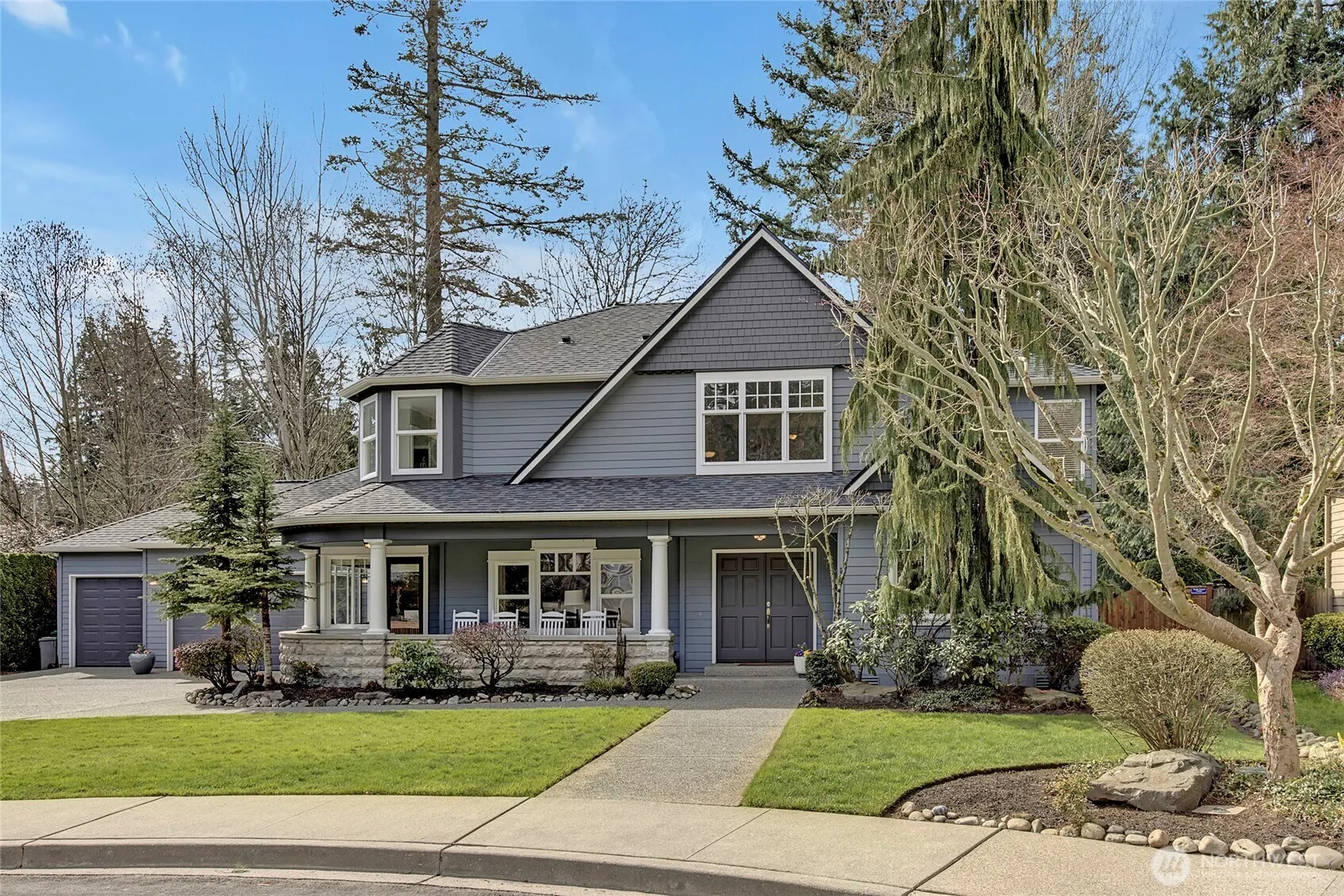 Beautiful craftsman in desirable Horseshoe Ridge neighborhood. 3,425 sq ft, 4 bdrm, 2.5 bath home surrounded by gorgeous landscaping with large lot backing up to protected green belt and located at the end of a cul-de-sac. Large, covered porch and spacious back patio equipped with a firepit. Double sided gas fireplace, huge master w/large five-piece en suite, sizable laundry room, three-car garage, and storage galore! Meticulously cared for with many updates including a 30-year roof (2023), furnace (2024), water heater w/tank booster, EV charger, renovated kitchen, bathrooms, primary suite, interior & exterior paint, landscaping & much more. Desirable location! Close to ferry, I-5, I-405, shopping, restaurants, parks & community trails.